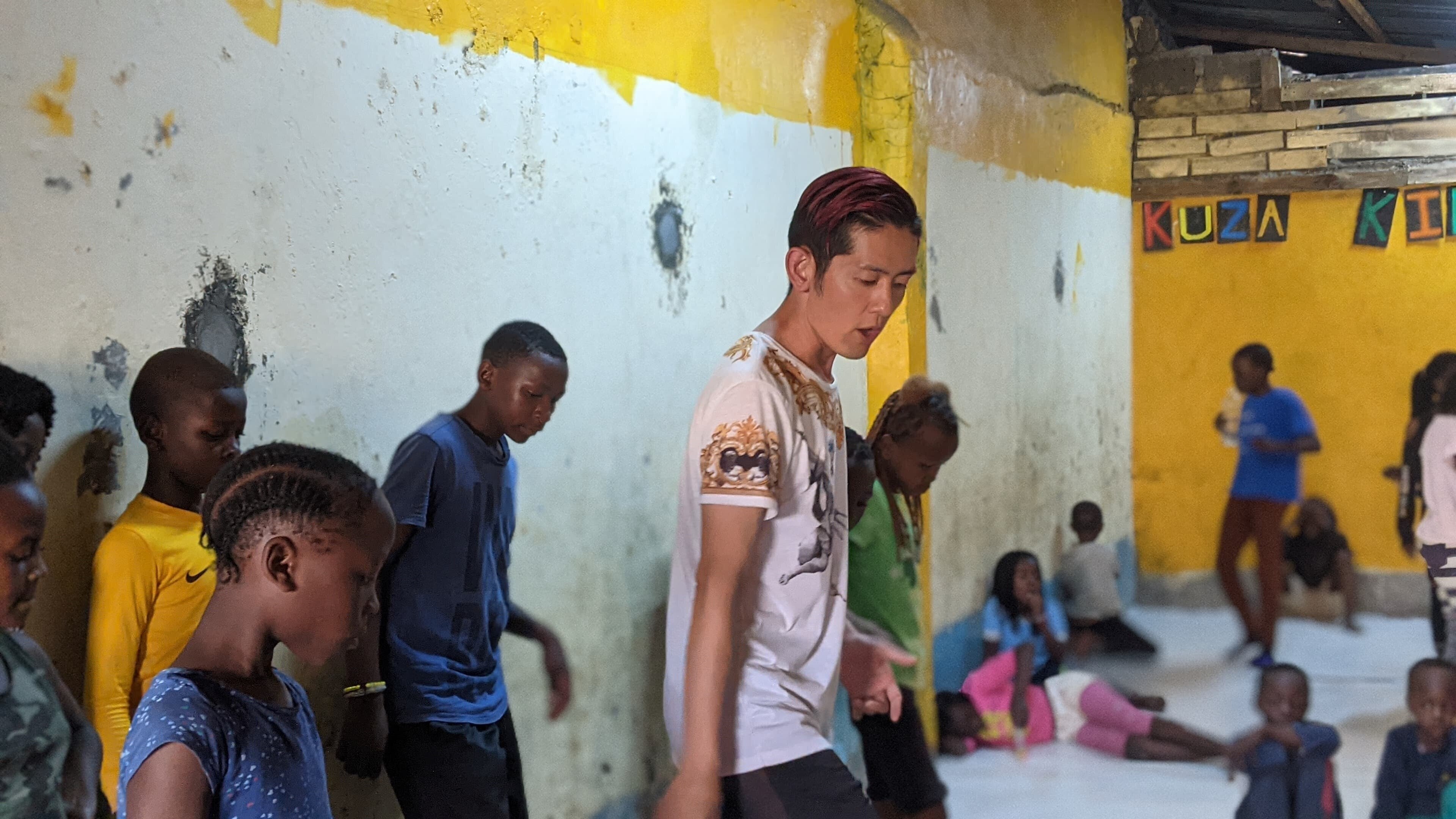 ケニアタップレッスンスワヒリ語講座タップダンスはリズムが早くなりがちなので「ポレポレー!」といった感じで。今では皆が早くなっていると、子どもが「ポレポレー!」と言って皆で気をつけ合うようになりました!