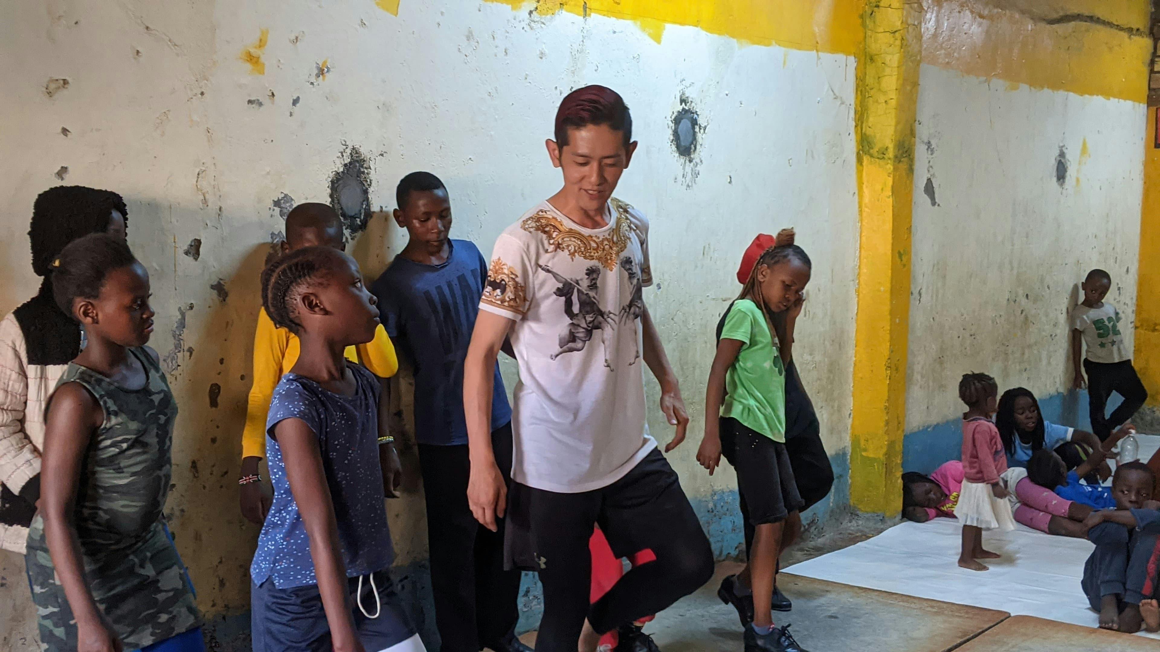 プロジェクトの10代から大人の方達が交代で檻で囲まれた安全なこのスペースで面倒をみています。