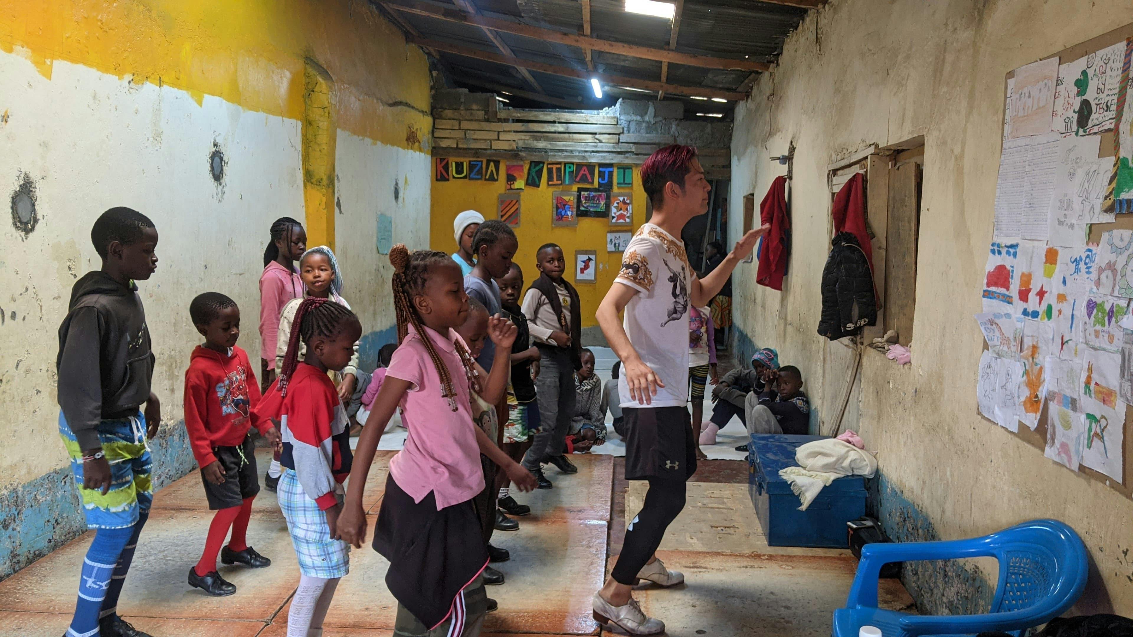 ケニアでの子ども達のレッスン前定番の挨拶作りました!