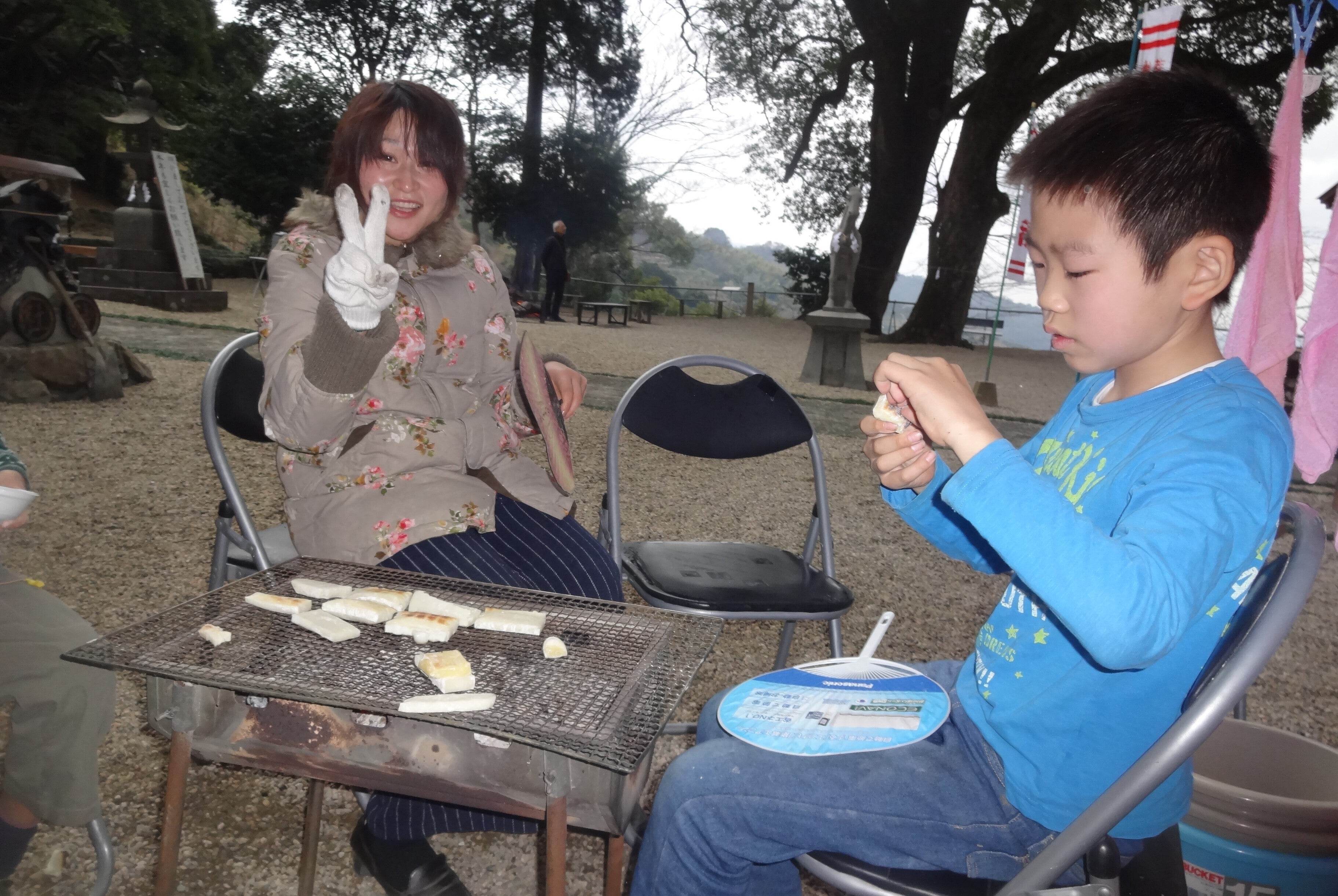 男女神社 正月のおたのしみ―餅のみかん餅の焼き餅