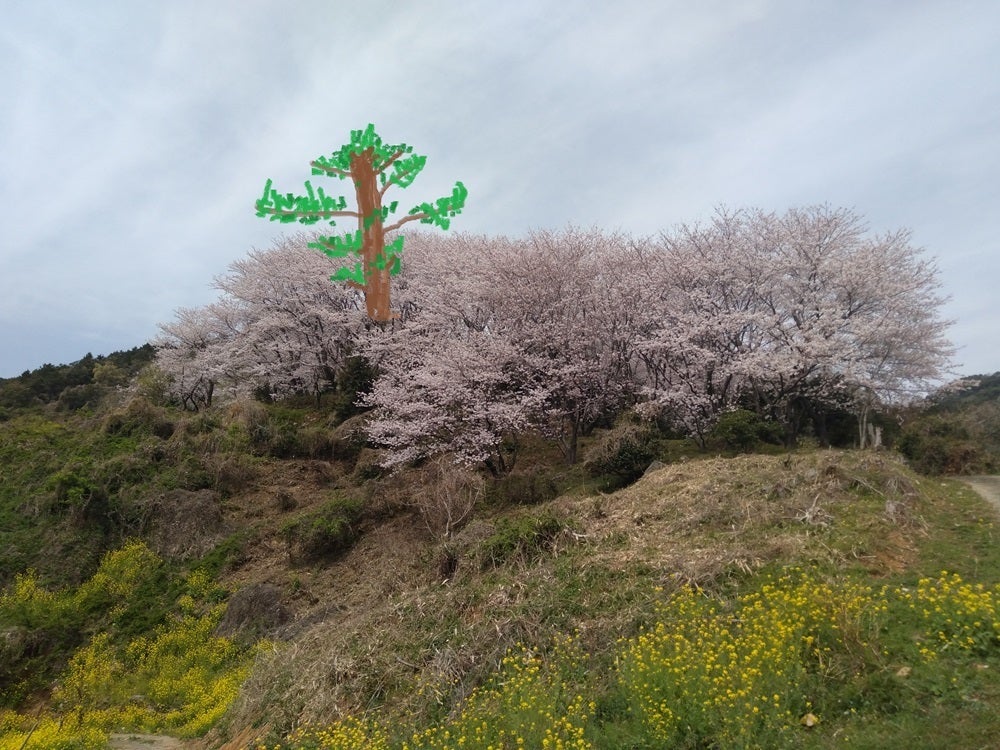 昭和30年頃まで存在した大松「鐘掛け松」は今はありませんが、20年程前に50本の桜が植樹されました。