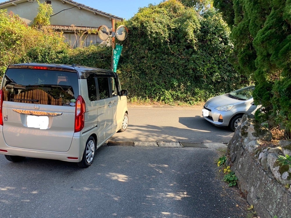 集落のなかにある危険な出合い頭 男女神社は地域とともにその対策を10年以上前から検討し、市と交渉を重ねてまいりました。