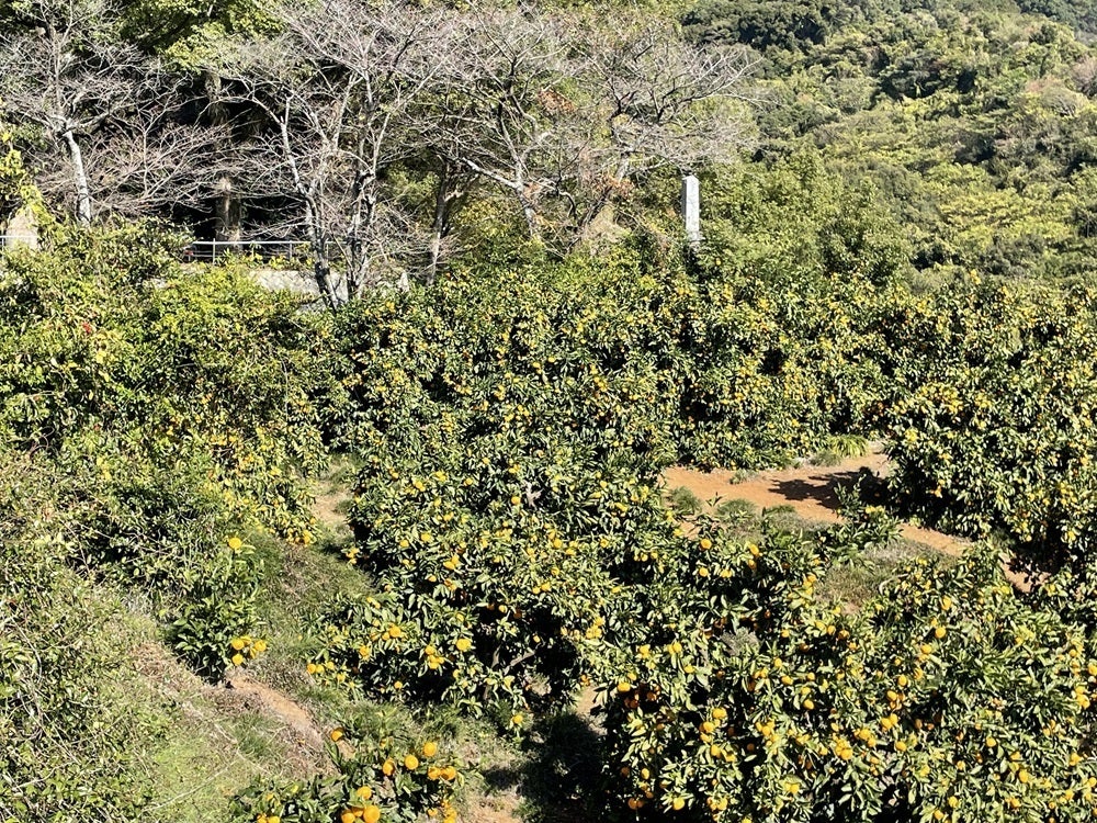 男女神社は山の中腹に位置し、周辺はミカン畑が広がっています。
