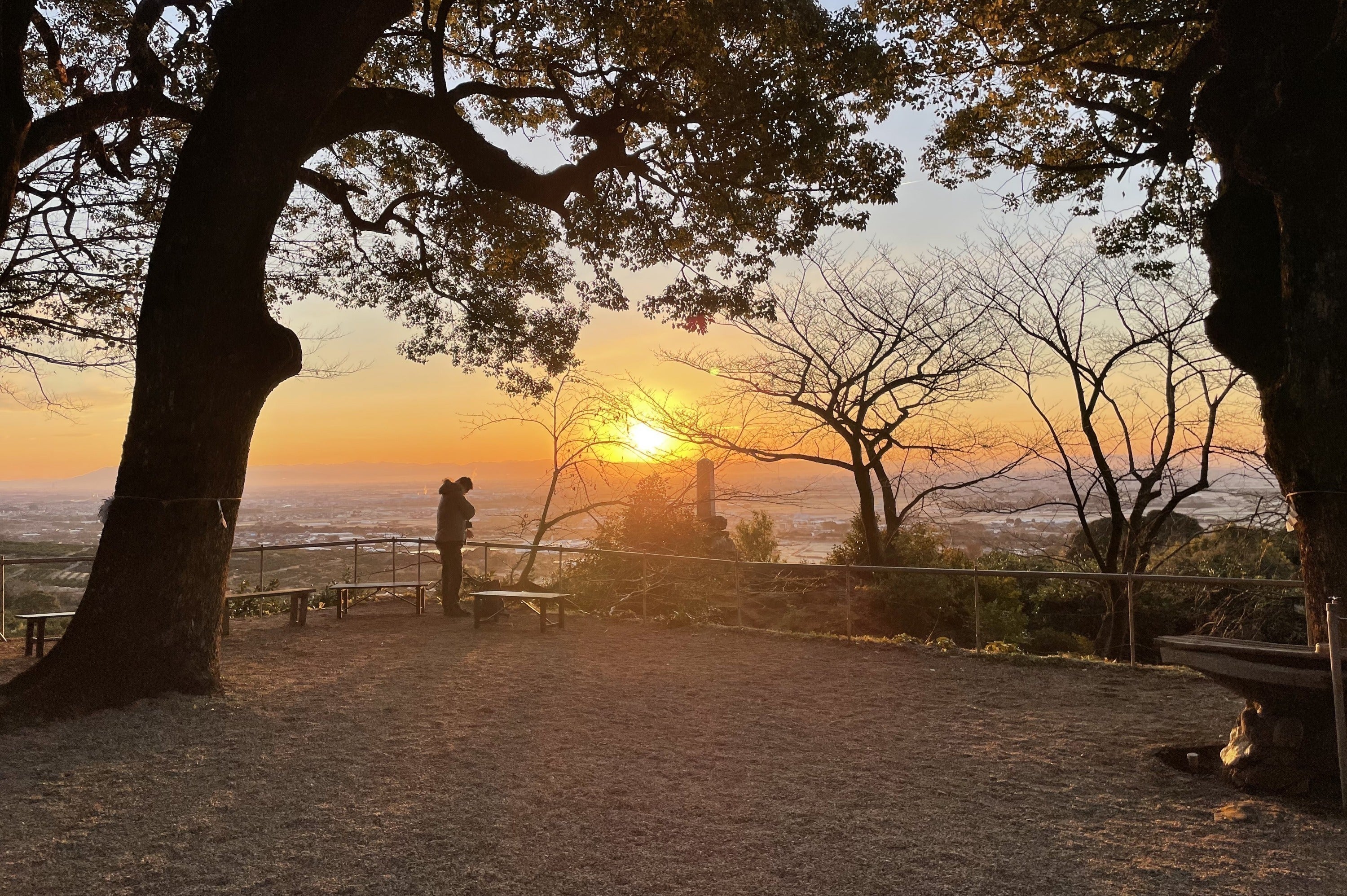 男女神社からは佐賀平野が一望でき、晴れた日は目の醒めるような風景がパノラマのように広がります。夜景の美しさはいうまでもなく、特筆すべきは山肌から昇る朝日で、言葉には表現できない程です。心身の癒しや湧き上がる活力を感じることができます。御来光(令和5年1月2日撮影)