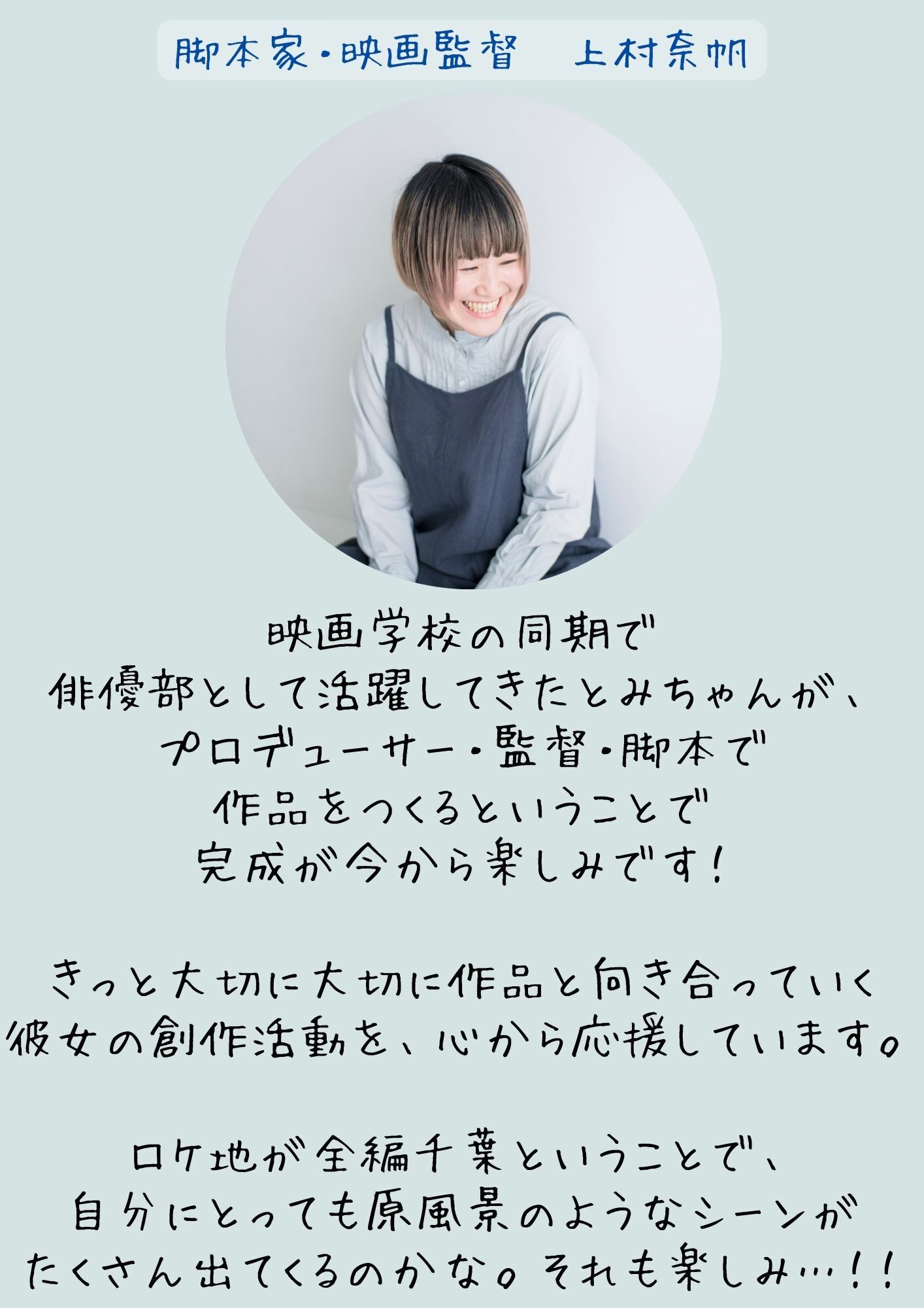 千葉出身の脚本家・映画監督 上村奈帆さん