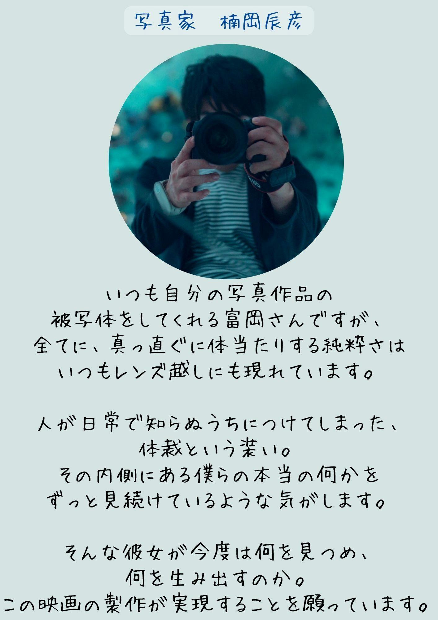 誰かに我慢をさせるとわかっているのに自分がやりたい企画をやりたい形のまま通すことはできない…やりたい形を変容させて実現していくべきか…と考えていた時、このクラウドファンディングを伴走サポートしてくださっている幕張PLAY(株)さんから「富岡さんが監督するっていうのは、どうですか?」とご提案いただきました。