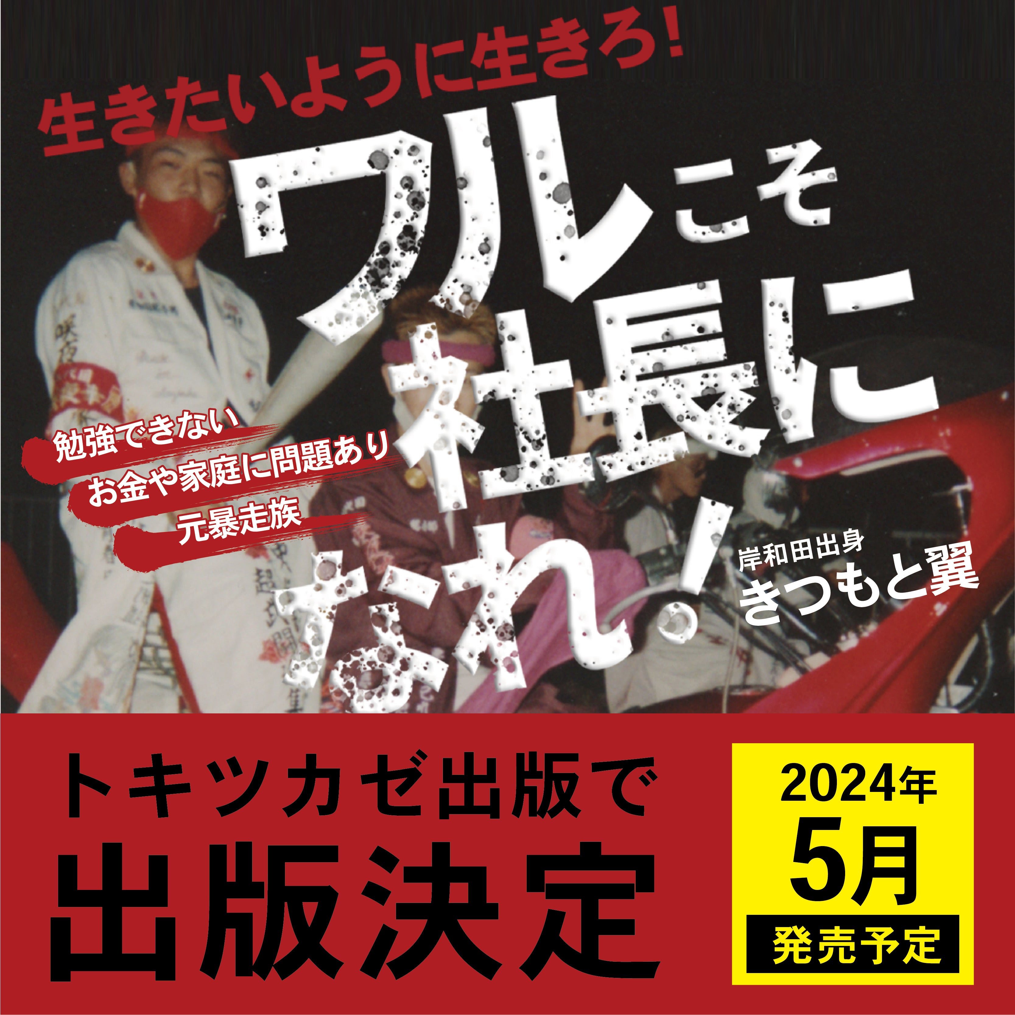 そのために、元暴走族総長から起業し、現在年商3億を上げる橘本翼の体験から“ワルだったからこそ”得てきたスキルや哲学をまとめた書籍を出版したいと考えています。