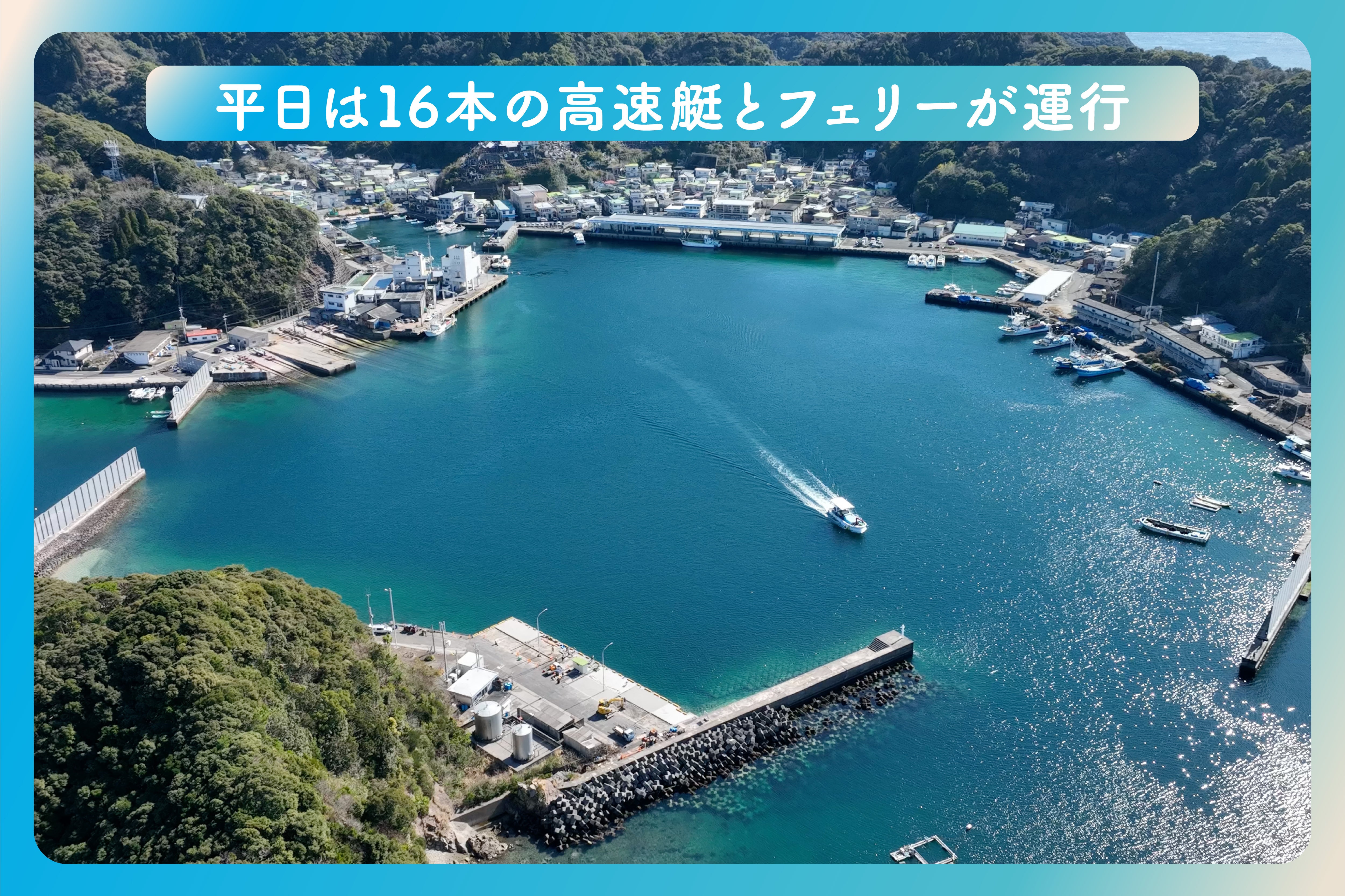 延岡駅から車で約20分ほど北上したところにある港(浦城港)から定期船が出ています。