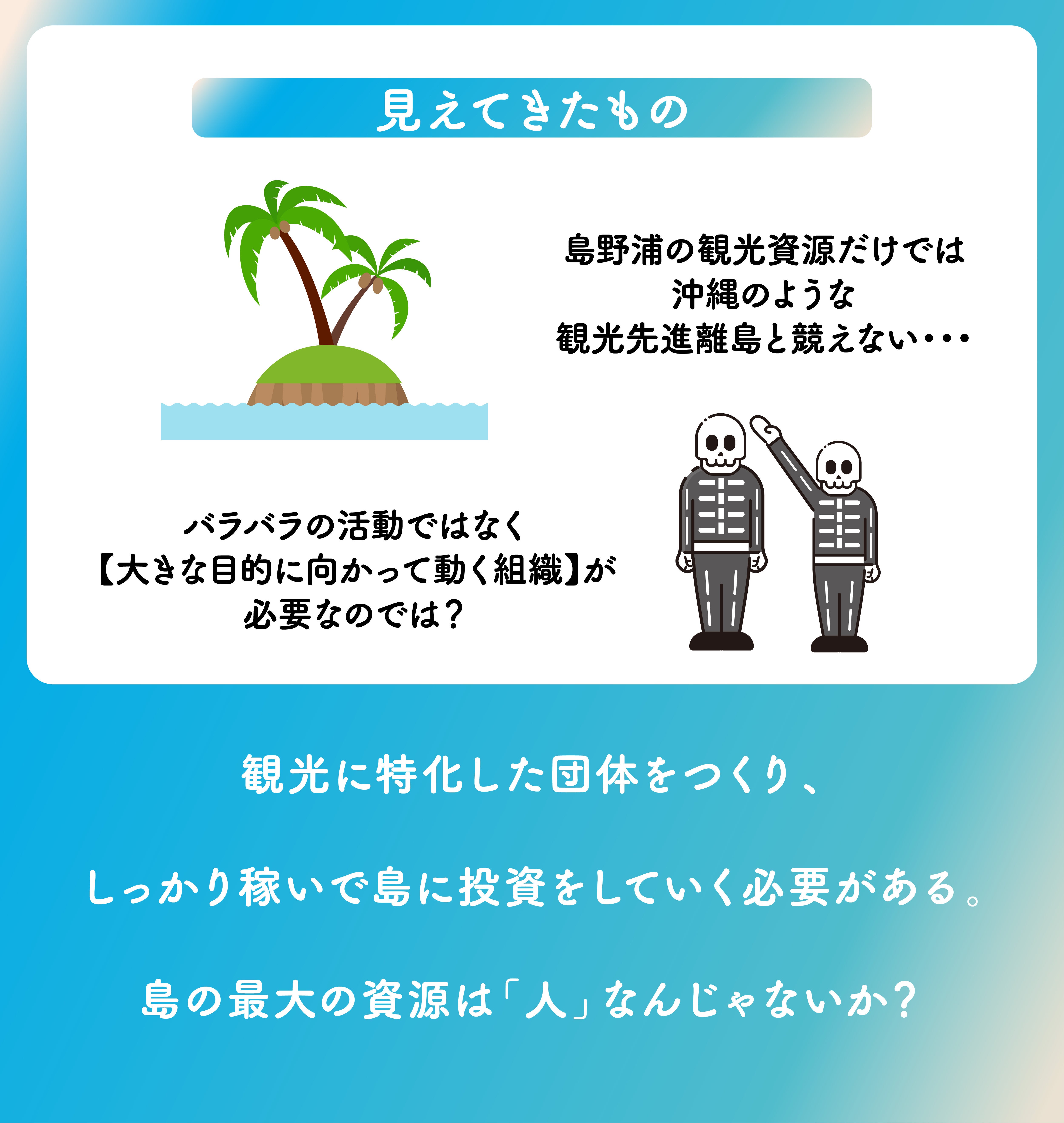 人を観光資源とした島づくりをNPO法人で取り組んでいこう!と考えました。