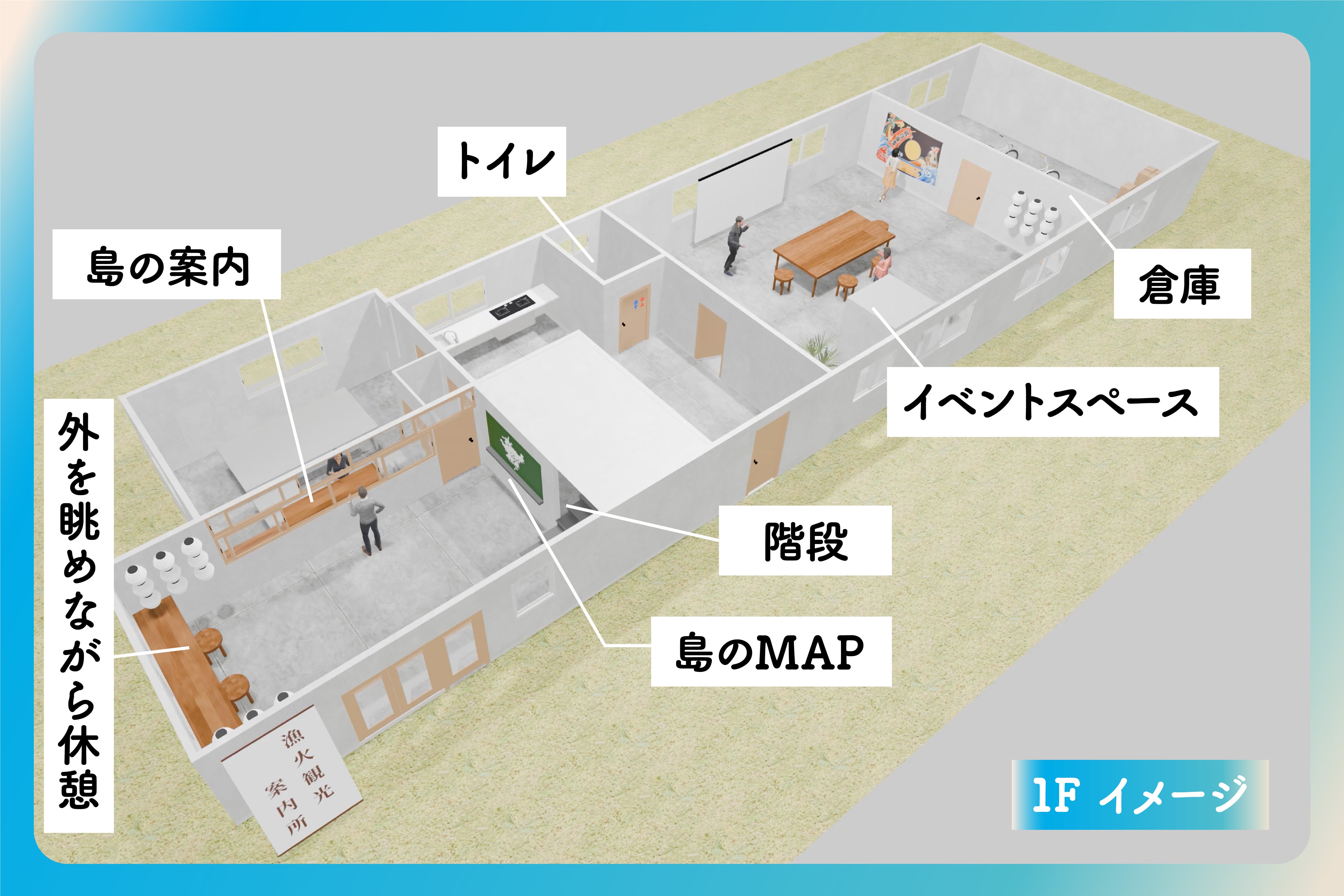 そこで、島民と観光客が交差する拠点として、イベントスペースの機能も盛り込みたいと考えています!