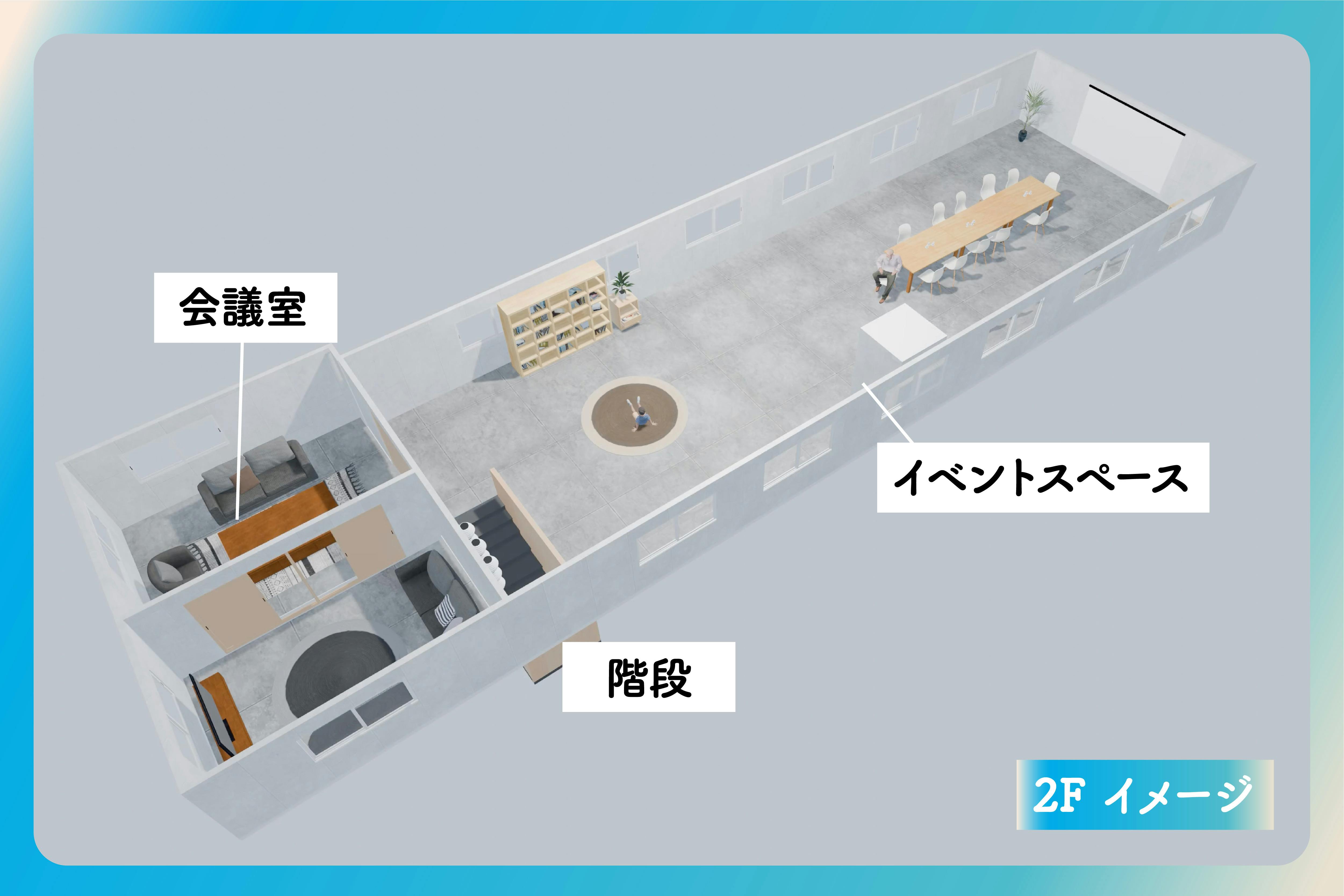 また、壁面には島の全体像が分かりやすく書かれた大きなMAPを掲示し、2階は会議やイベントスペースとして活用可能な空間を作りたいと考えています。