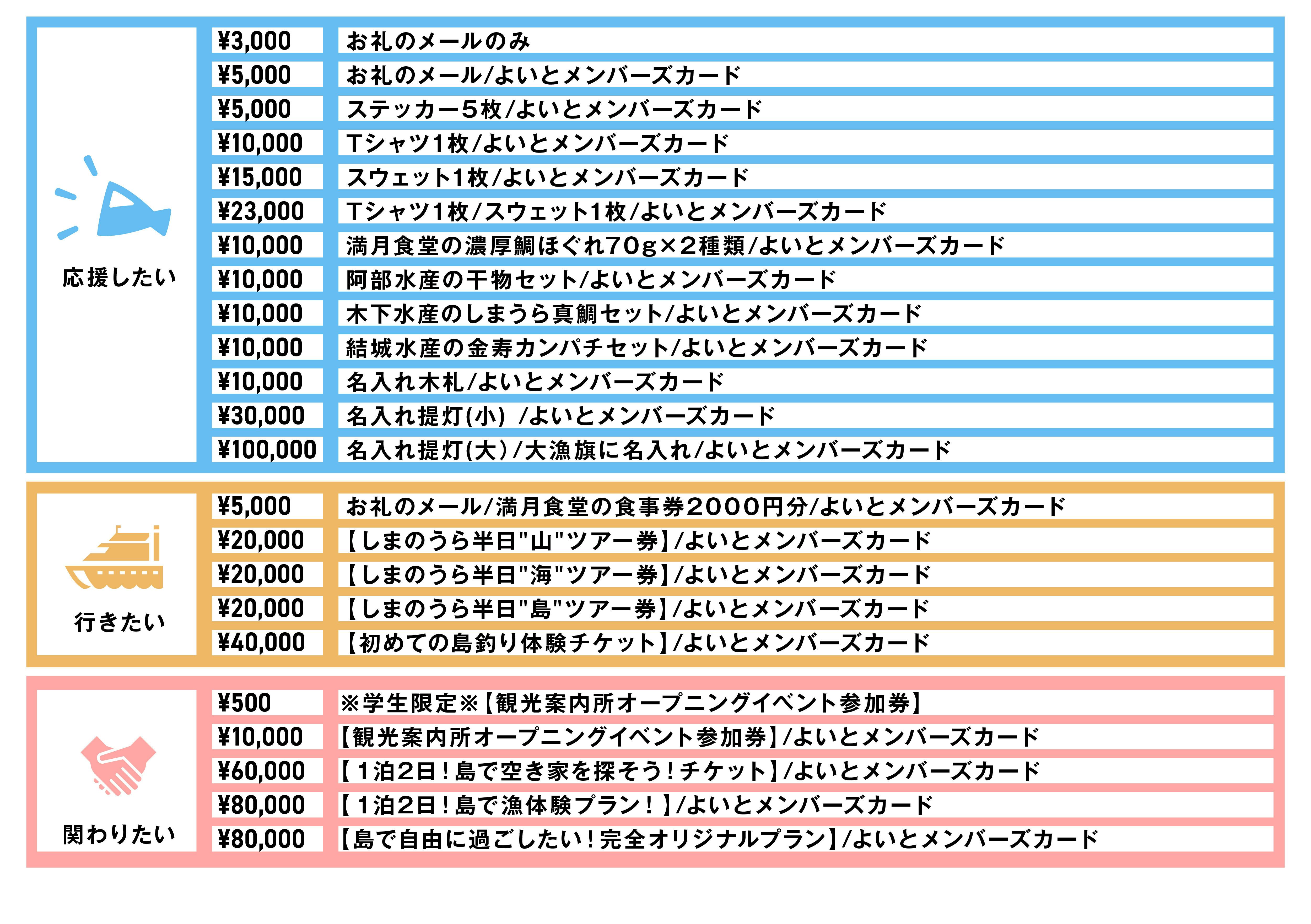 ※「お礼メール」以外のすべてのリターンにメンバーズカードが付いています!