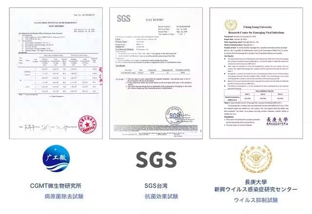 -検査実施時期:SGS台湾2020年5月26日、CGMT微生物研究所2020年6月28日、長庚大学新興ウイルス感染症研究センター2021年1月1日〜1月31日、