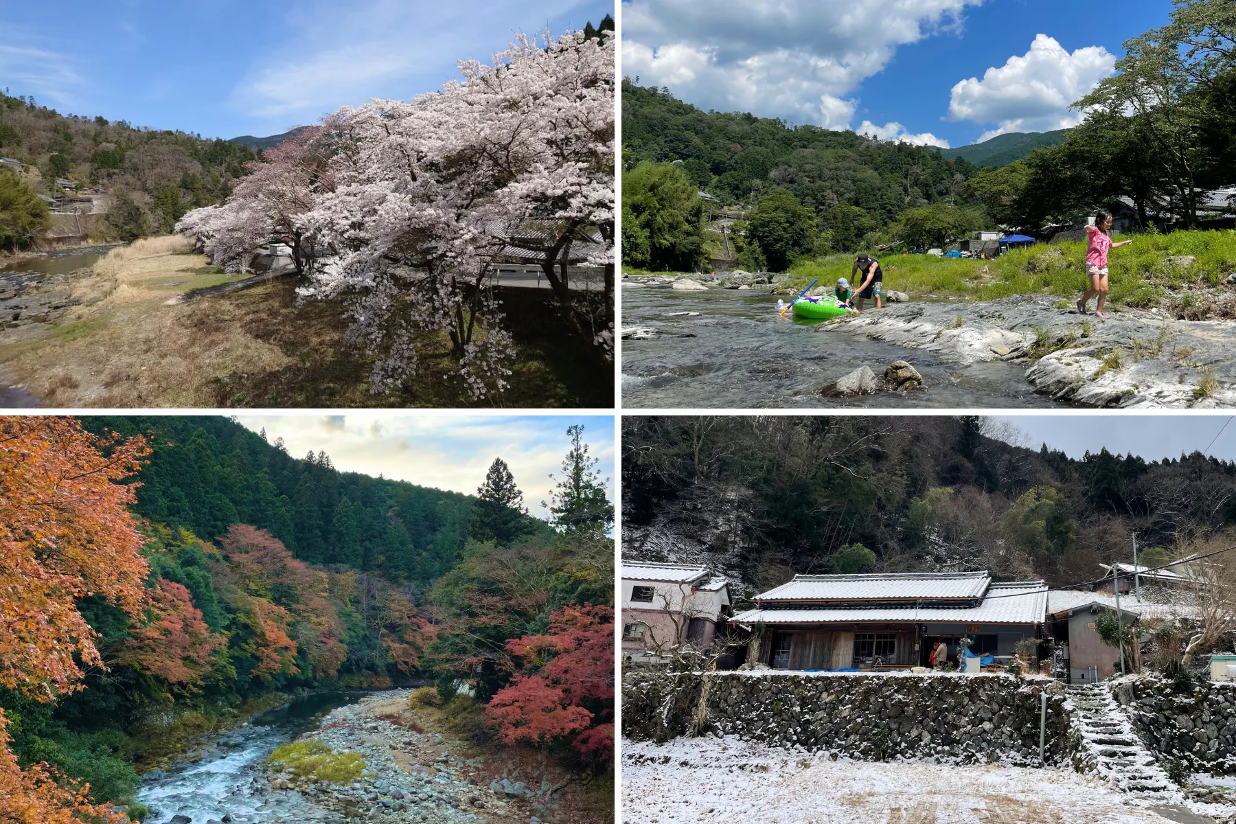 夏は前の川で思い切り泳いだり、縁側でスイカを食べたり、冬には雪で遊んだり。