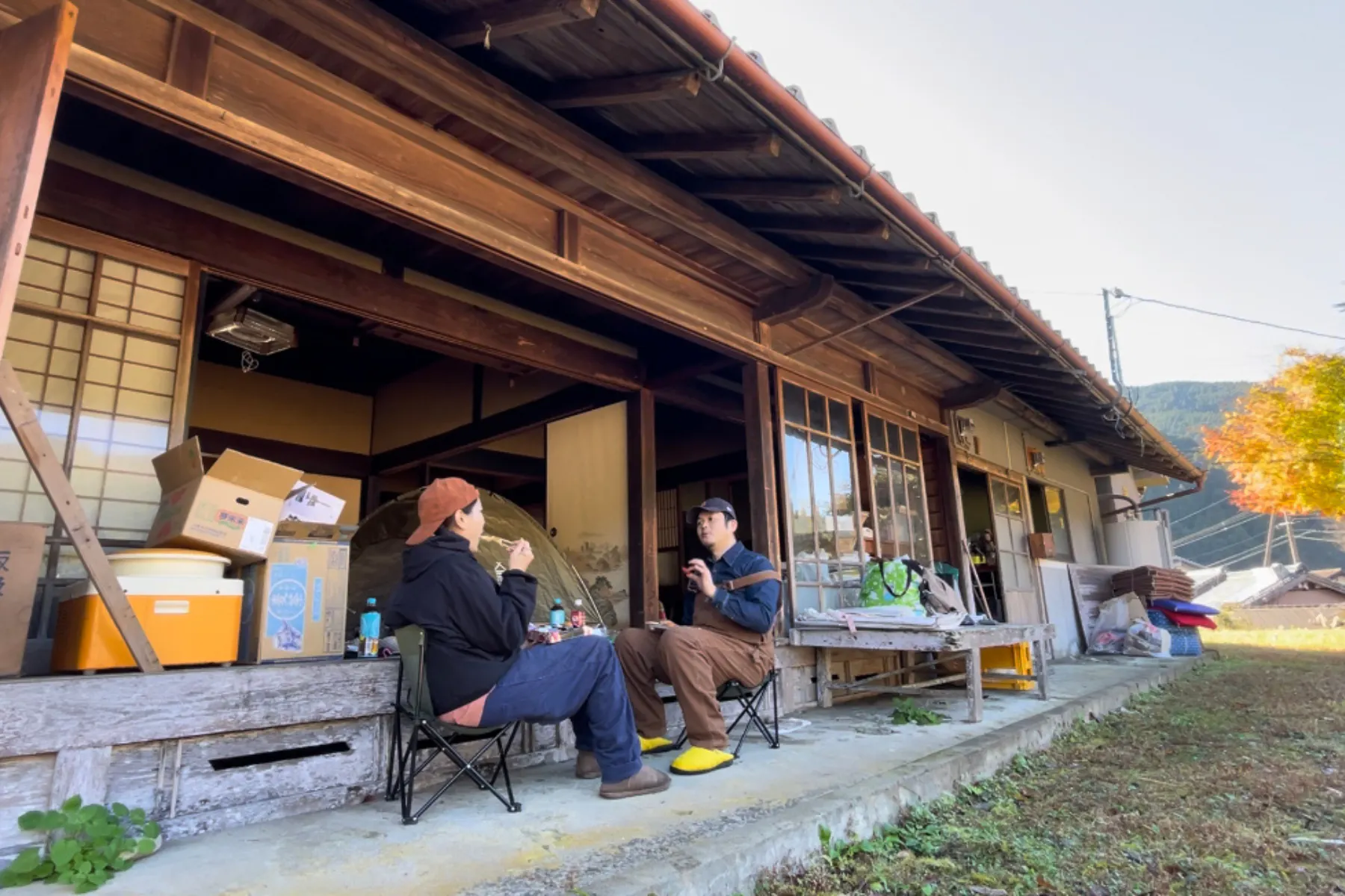 私が古民家の片付けや掃除をしている間、夫は縁側で寝てたりで。笑
