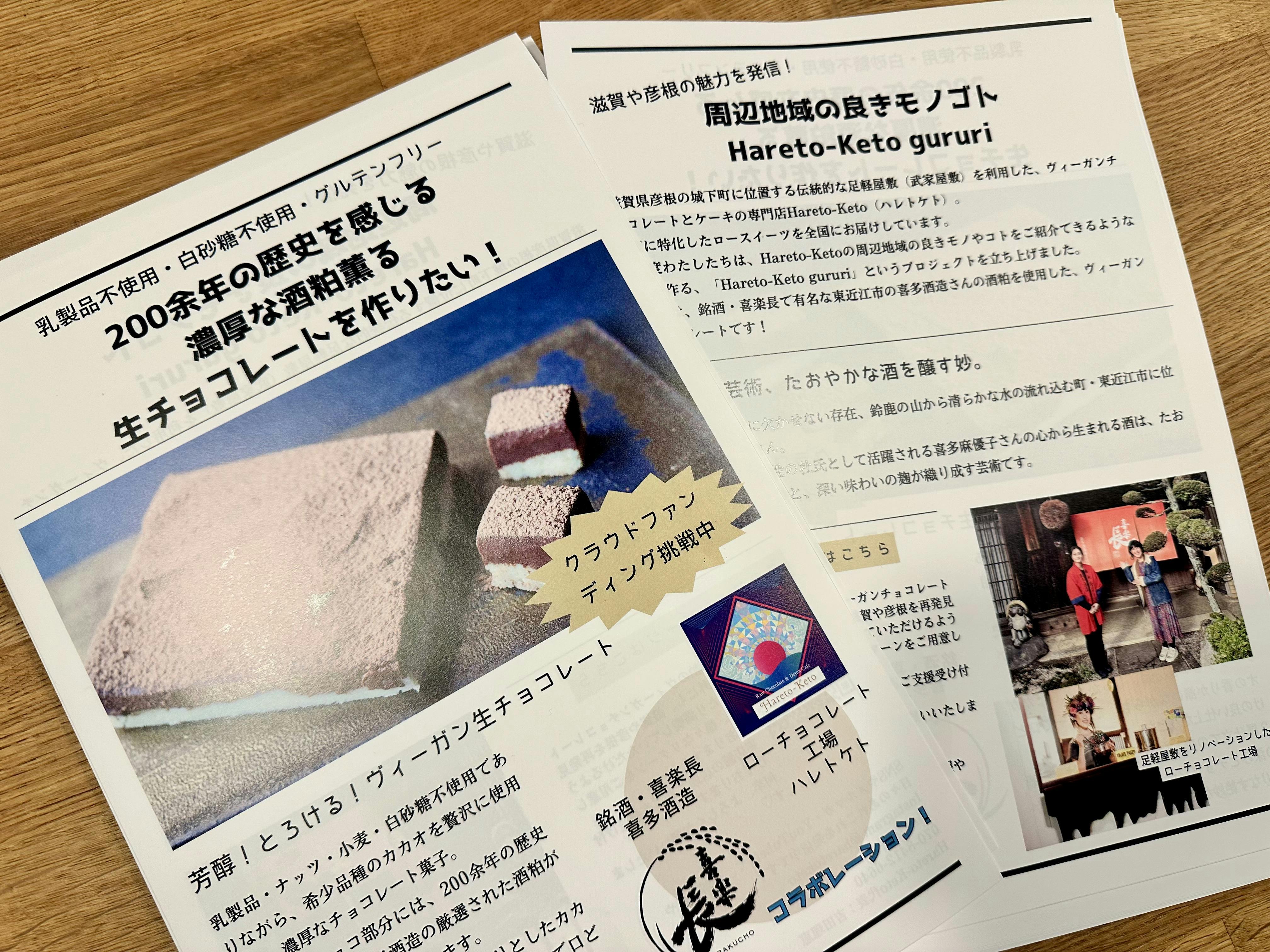 2日前に、彦根の名店といわれるような素晴らしいセンスの料理人さんたちに、酒粕ヴィーガン生チョコレートをご試食いただきました。