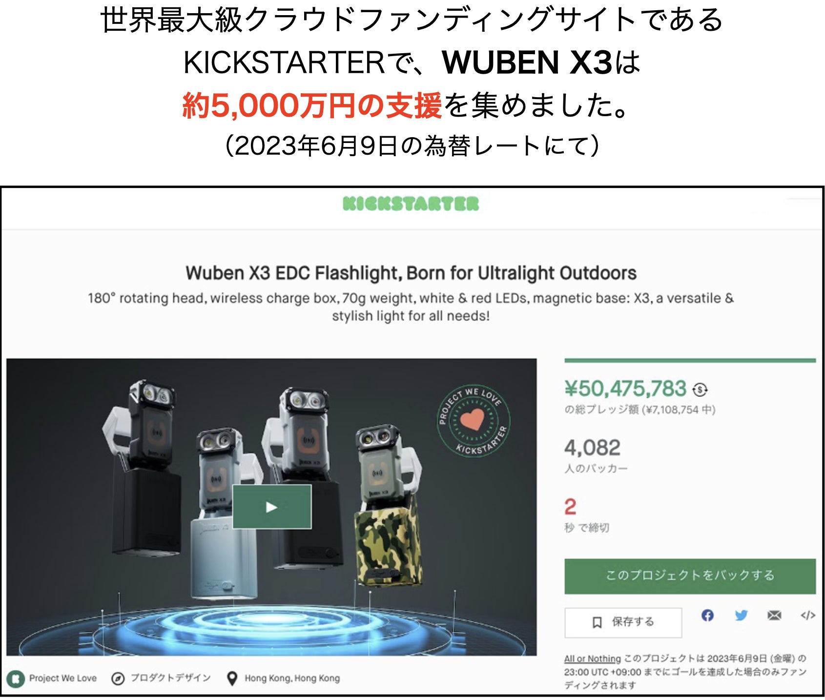 2024/01/20 08:00この度はCAMPFIRE machi-yaのWUBEN X3のプロジェクトにご支援頂き、また拡散にご協力頂きましてありがとうございました!!皆様からのご支援に、スタッフ一同感謝の気持ちでいっぱいです。リターンの商品に関しましては、予定どおり皆様の手元にお届けできるよう現在準備を進めており、進捗をご報告させて頂きます。引き続きよろしくお願いいたします。 もっと見る