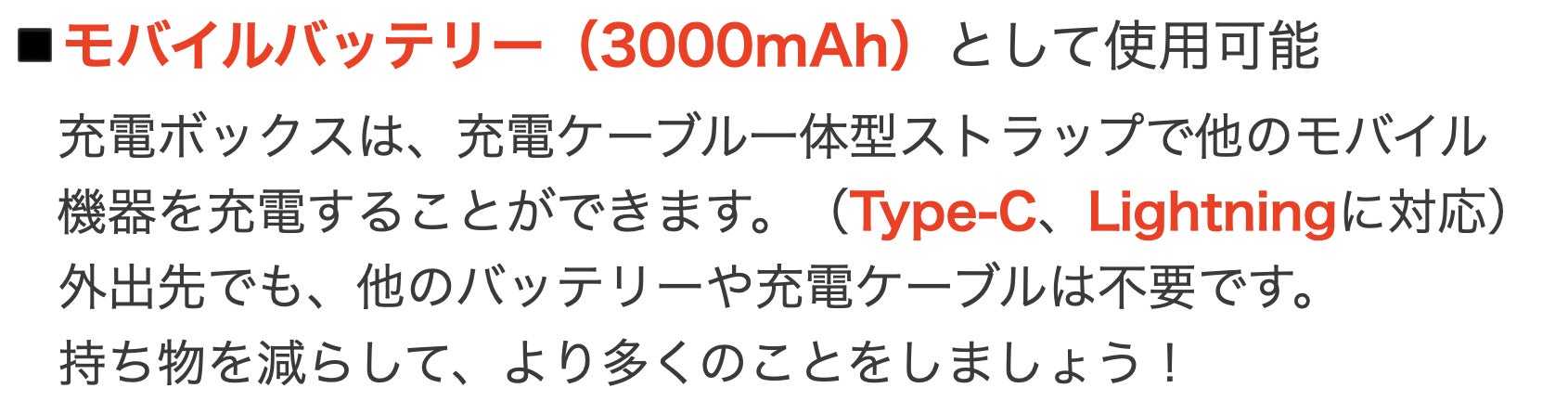 充電ボックスは約2時間です(Type-C充電ケーブルと5V、2.1A充電器で充電した場合)。