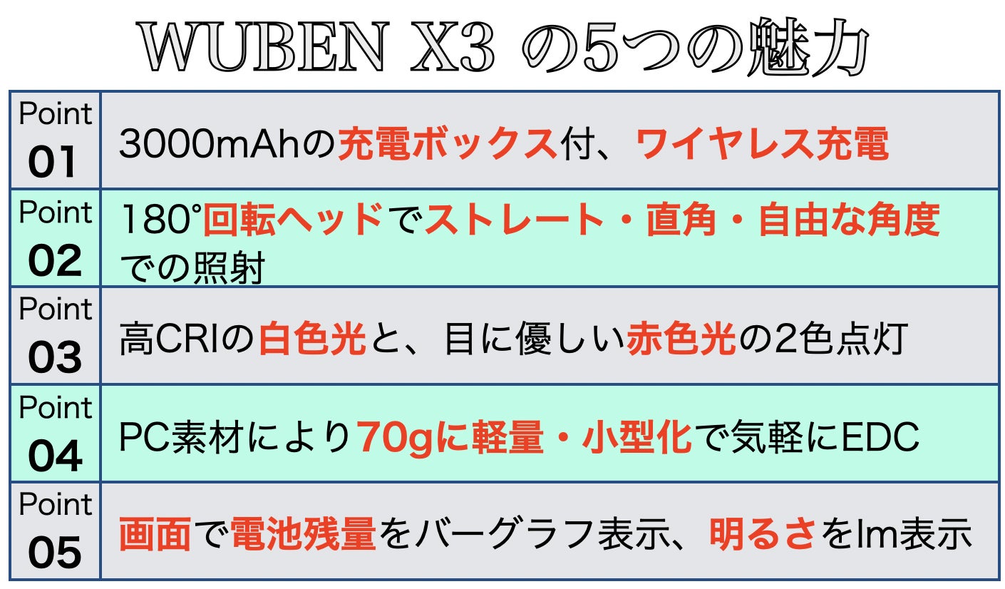 - ・メーカー名:WUBEN Light Inc.,