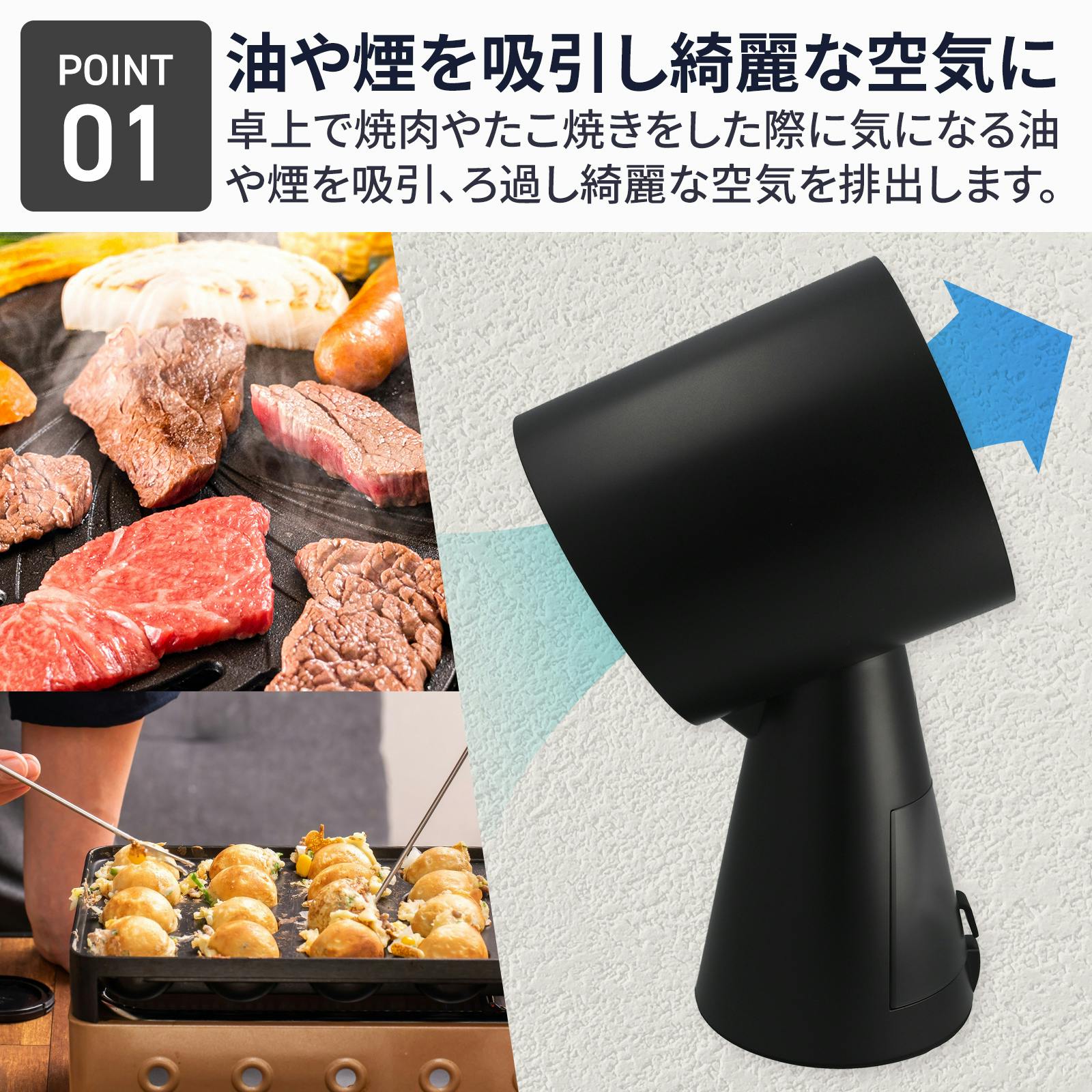 ご自宅で焼き鳥、たこ焼き、焼肉、お好み焼き、火鍋などする時、油や煙が室内に充満するのが気になりませんか?家の中の不快なニオイとなる要因は、主に調理から出る油や煙。テーブルクッキングの調理中の煙には油分が多く含まれ、空気清浄機を回していても完全に吸い取ることができません。その悩みを解決できる商品、卓上料理の煙、油、湯気を直接取れる卓上レンジフード(吸煙機)をお届けします。