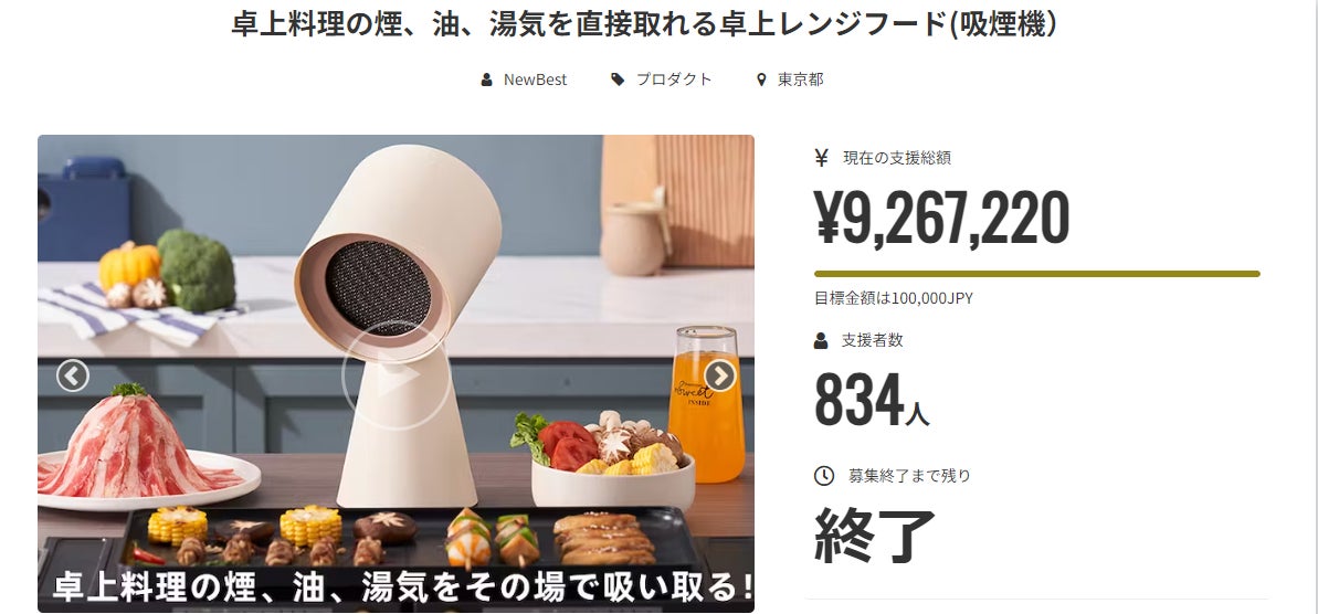 2024/03/30 15:37応援購入いただきましたみなさまお気に入りいただきましたみなさま吸引力アップ+耐熱性アップの卓上レンジフード(換気扇、吸煙機)の第3弾 、現在プロジェクト中でございます!■プロジェクト公開URL: https://camp-fire.jp/projects/view/746069ぜひ、このお得な機会をどうぞお見逃しなく! もっと多くの方に弊社商品を知って頂きたいと思っています。SNSシェアなどでプロジェクトを広めて頂けると励みになります!最後までどうぞ応援よろしくお願い致します! もっと見る2月2日に千葉倉庫より発送予定