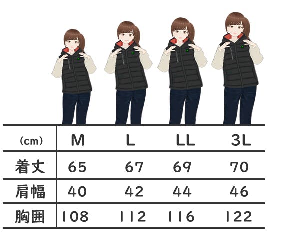 ※暖かさをより体感していただくには、ジャストサイズがおすすめですが、 余裕を持たれたい場合は、ワンサイズ上をお選びいただくのをおすすめいたします。