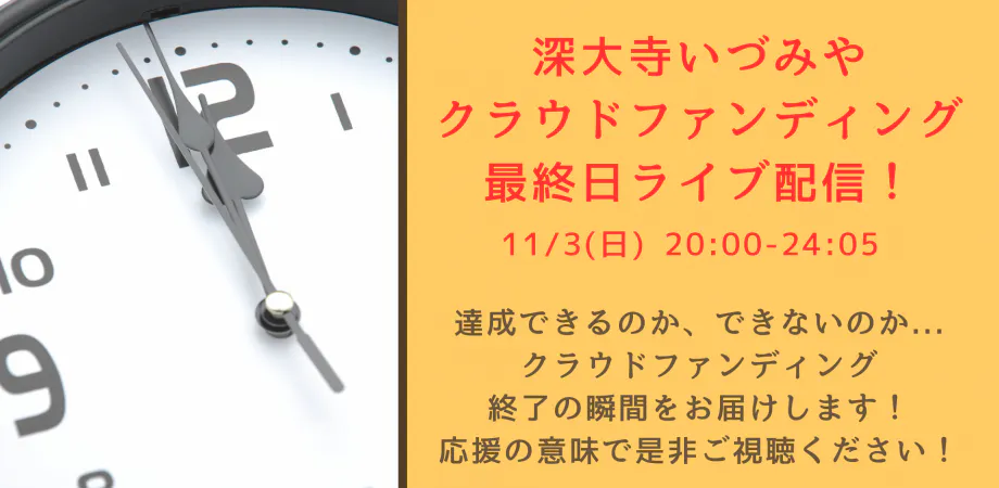 11/3(日) 20:00〜 クラウドファンディング最終日のライブ配信を行います!