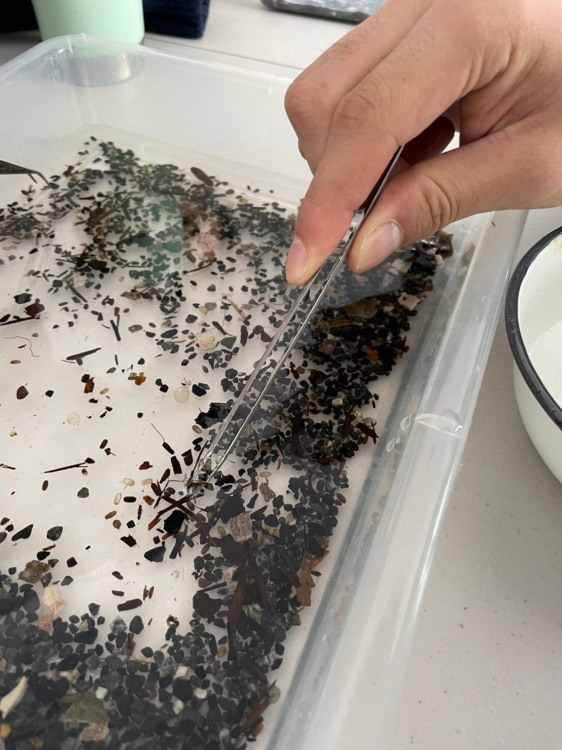 アマモの種を選別しています