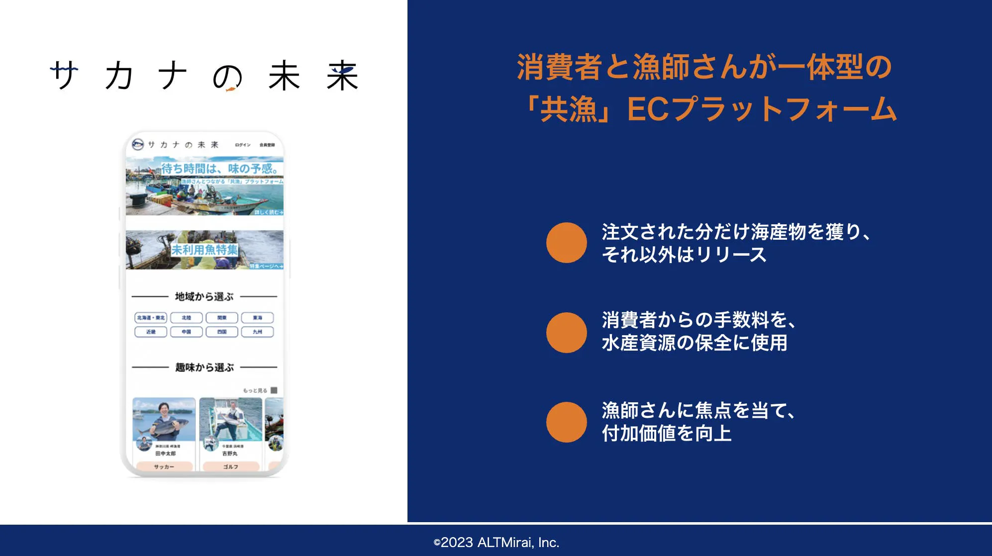 2023年4月、消費者と漁師さんが一体となった新しい漁のカタチ、「共漁」をもとにした産直ECサイト「サカナの未来」が誕生します。