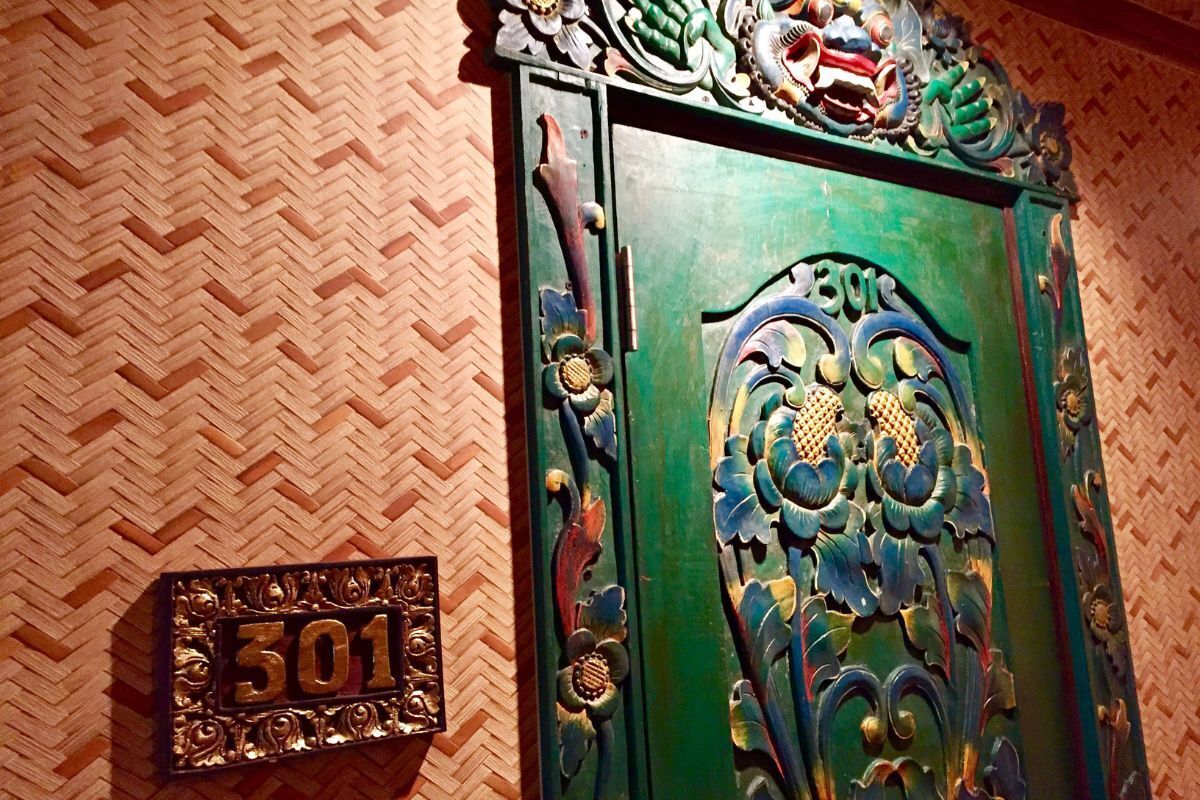 デラックスルーム入口ドアはバリ島でオーダーした特注品