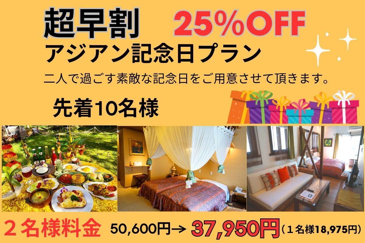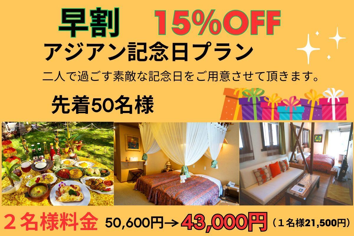 <アジアン記念日プラン内容>1泊2食付き 2名様料金