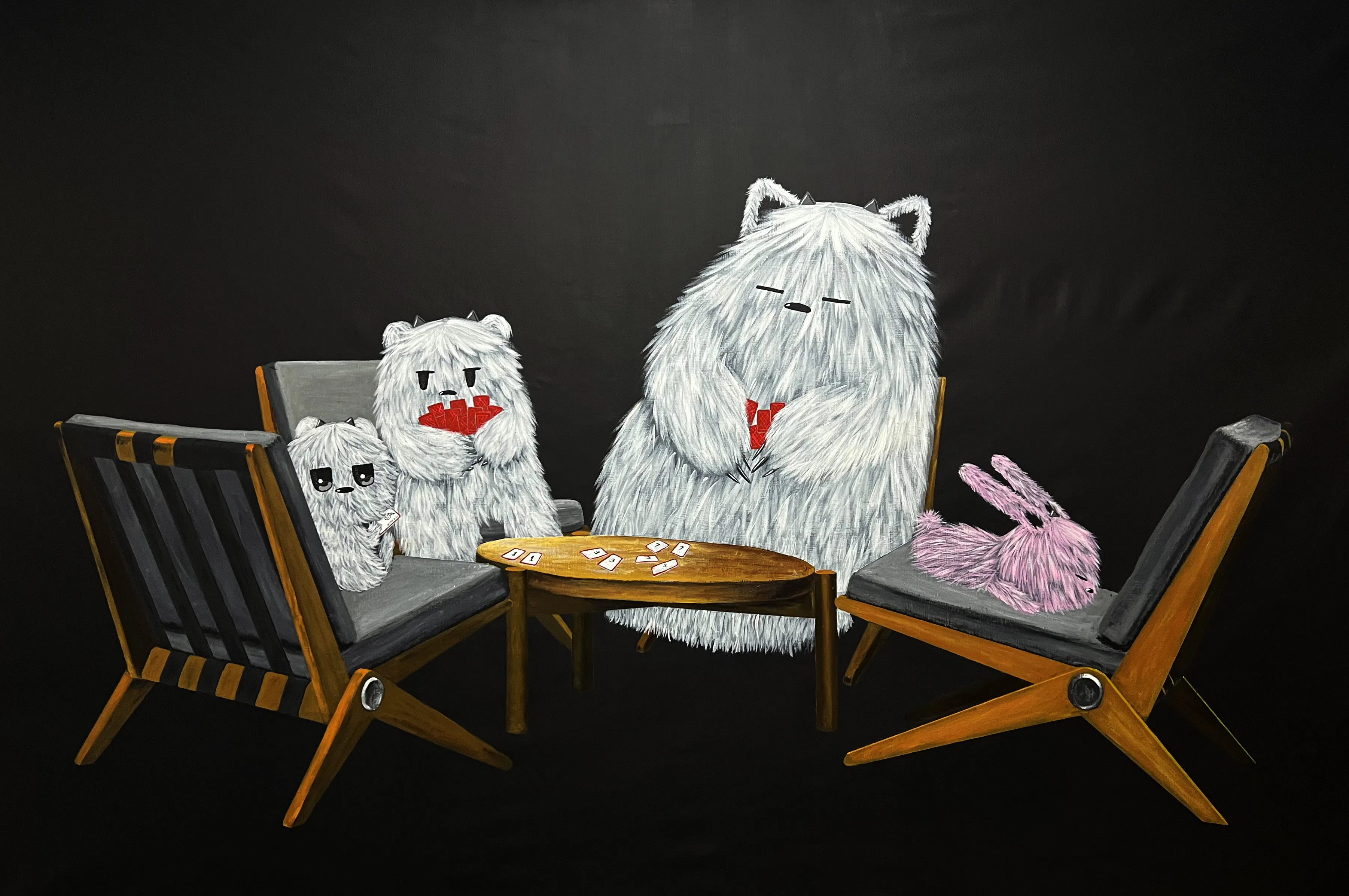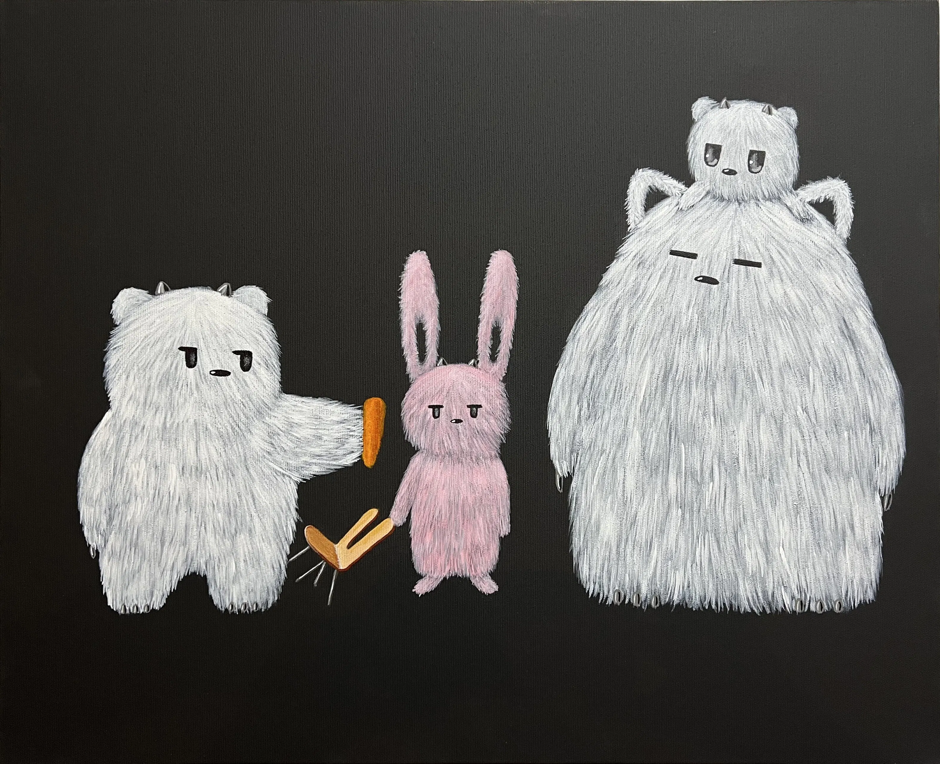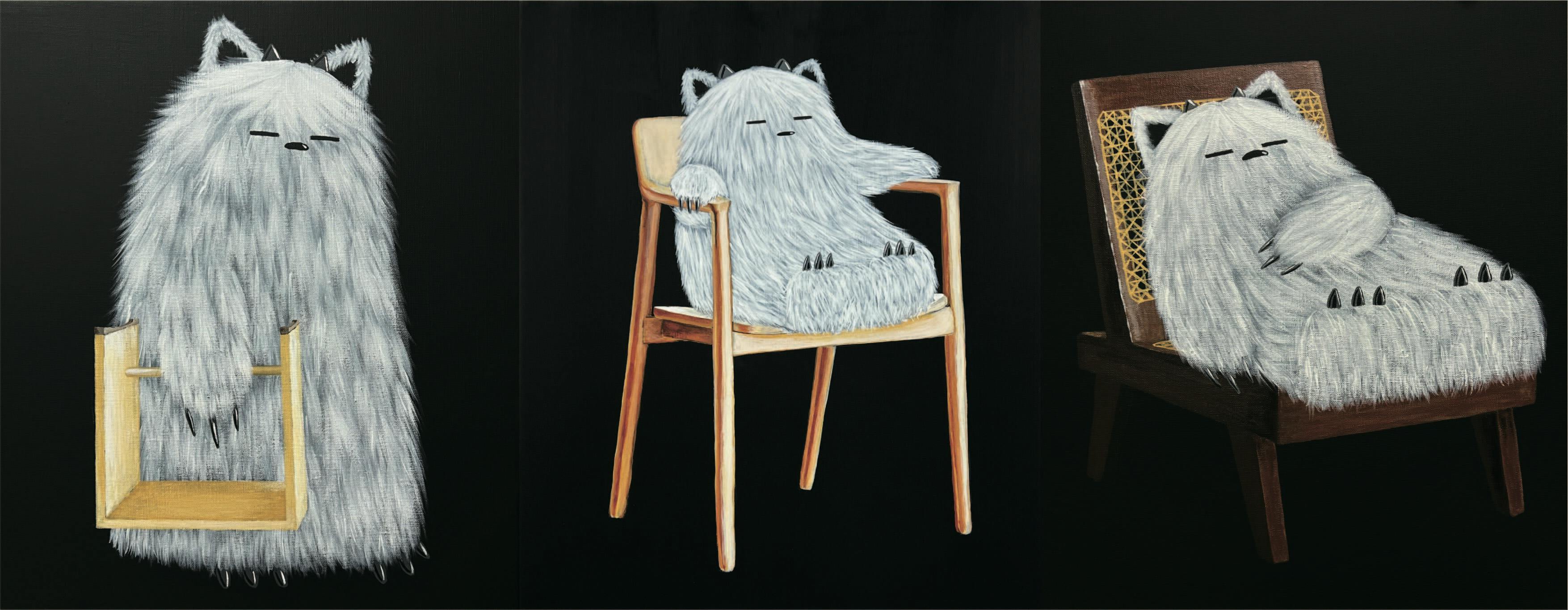 独学で制作を開始。デザインを学ぶ経験を生かし、Ku(大きい熊),Mu(小さい熊),Ra(ラッコ),三つのキャラクターを通して、アートとデザインが共通している"美"をテーマで制作されている。