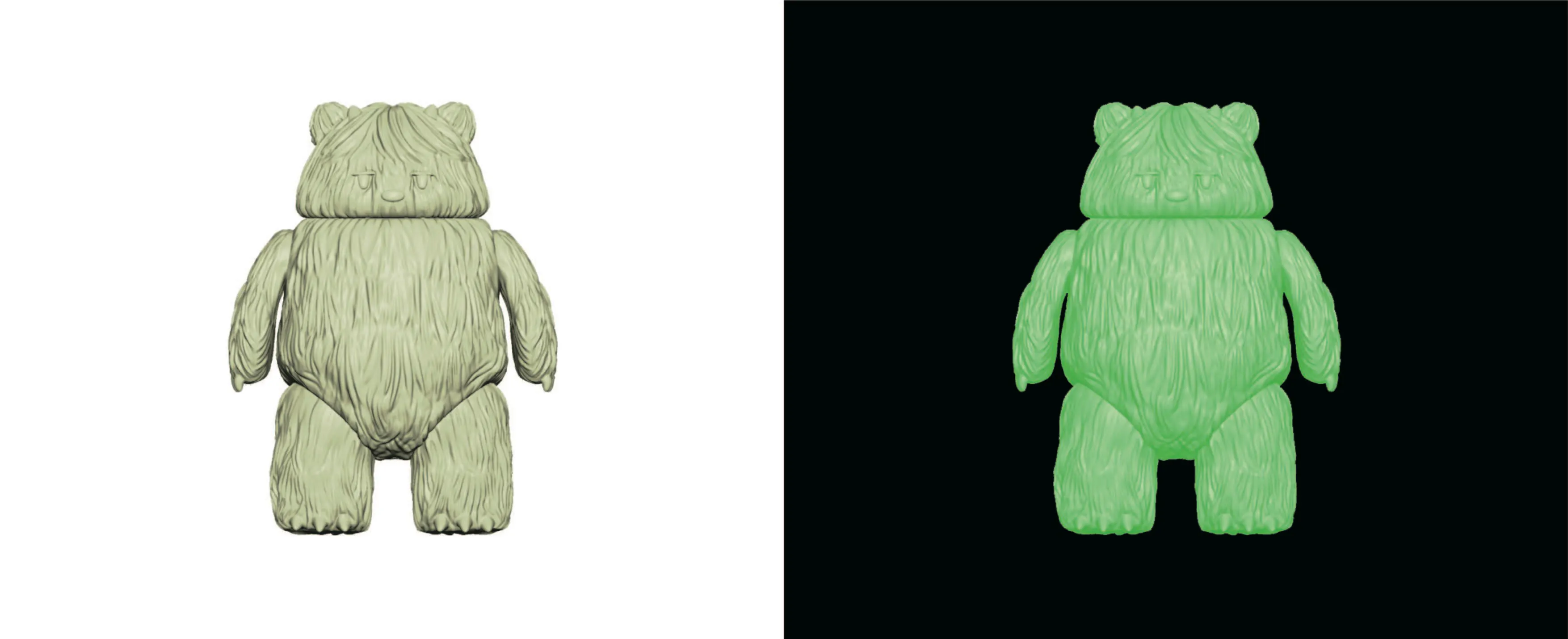 今回のクラウドファンディングで、目標達成額に達した際は、「Ku」と「Mu」の塗装版と蓄光素体の生産を行う予定です。KuとMuは熊をモチーフとして創造されました。