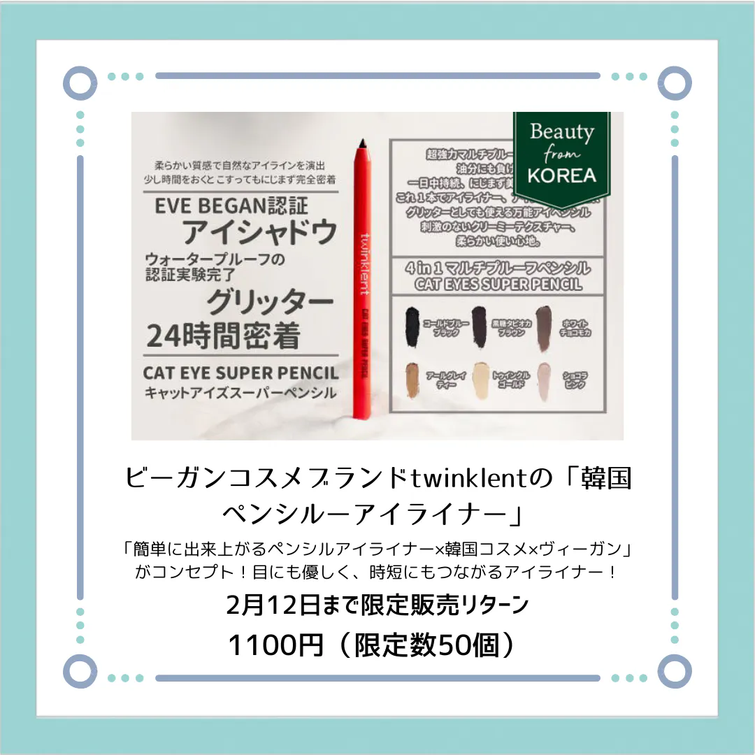 【人気のペンシルアイライナー×韓国コスメ×ヴィーガンコスメ】
