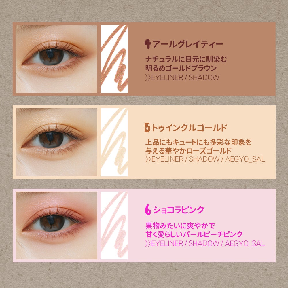 ポイント③これひとつデイメーチェン可能!「6色アイライナー」