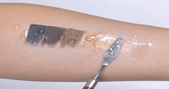 トリメチルシロキシシリケート、シクロペンタシロキサン、酸化鉄(CI 77499)、合成ワックス、メチルトリメチコン、カルシウムチタンボロシリケート、マイカ(CI 77019)、セレシン、ポリグリセリル-2トリイソステアレート、酸化チタン(CI 77891)、ポリイソブテン、ポリヒドロキシステアリン酸、ジメチコン、レシチン、エチルヘキシルパルミテート、イソステアリン酸、イソプロピルミリステート、グリセリルカプリレート、カプリリルグリコール、スズ酸化物(CI 77861)、ポリグリセリル-3ポリリシノレート