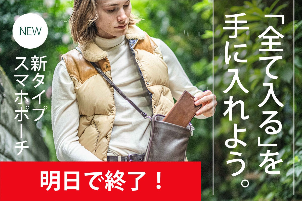 高級イタリアンレザーを贅沢に使用した、メイドインジャパンのスマホポーチ