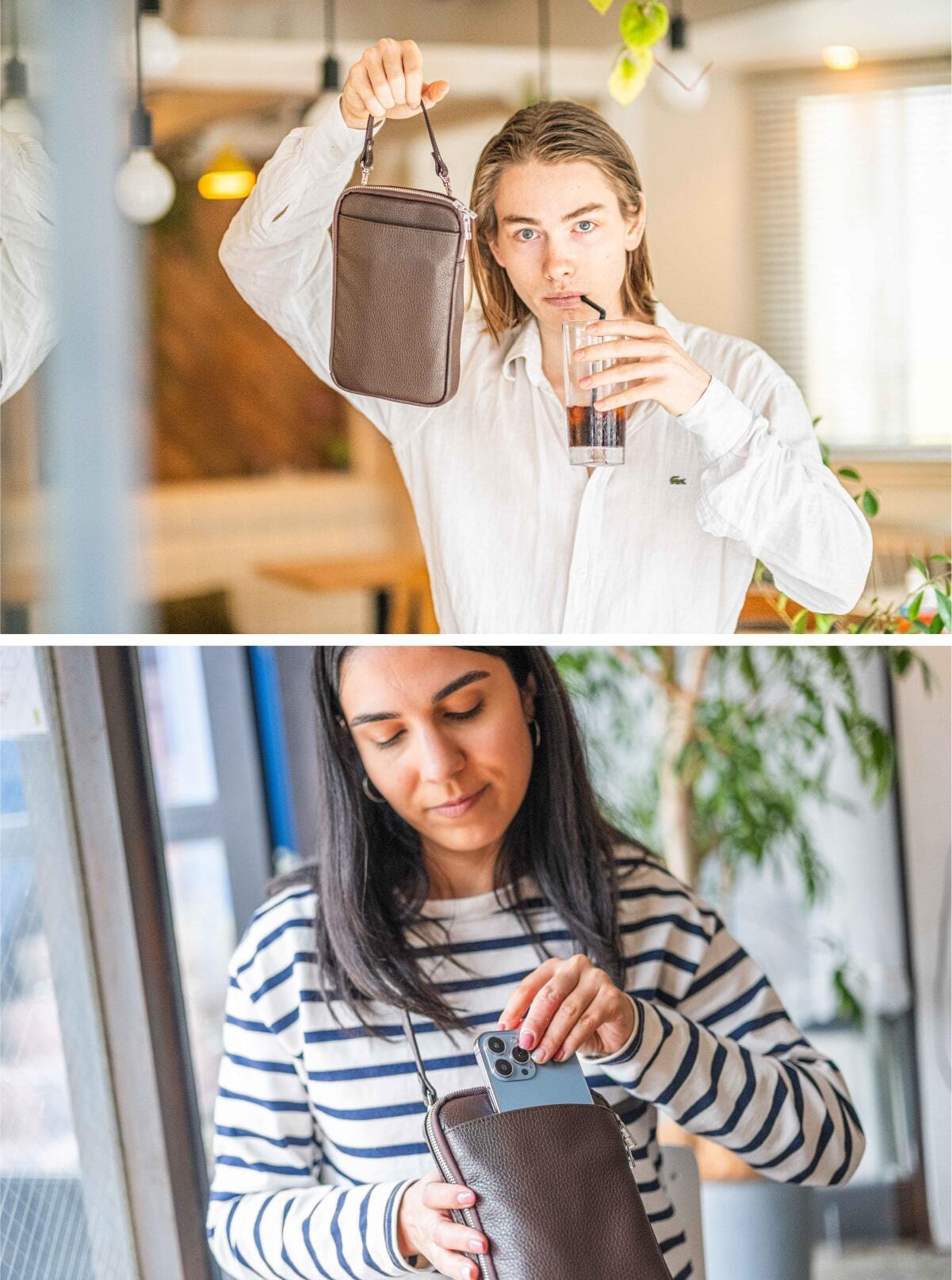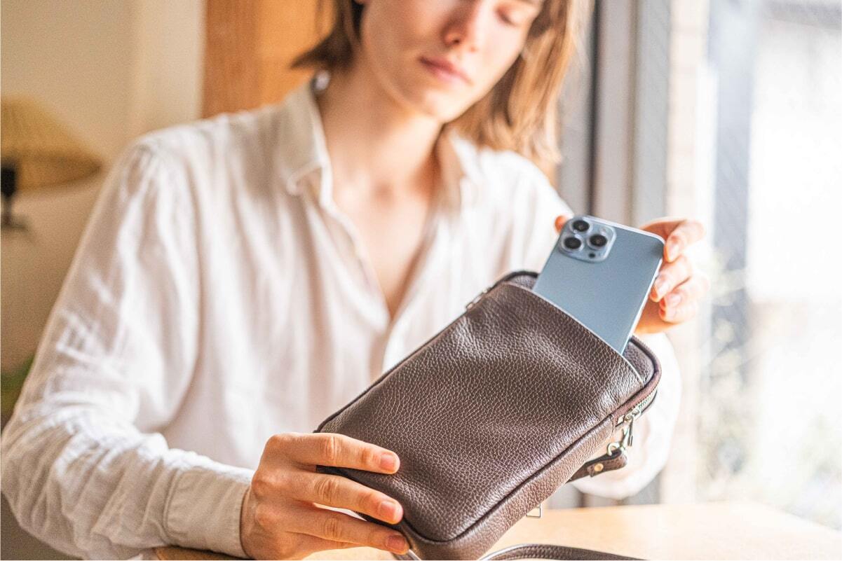 スマートフォンポーチ購入の後悔で目立つのは「ケースのままだと、スマホが入らなかった」「財布が大きいので、スマホと一緒に入らなかった」というケースです。スマートフォンポーチは、365日使うものだから快適であることが大切です。