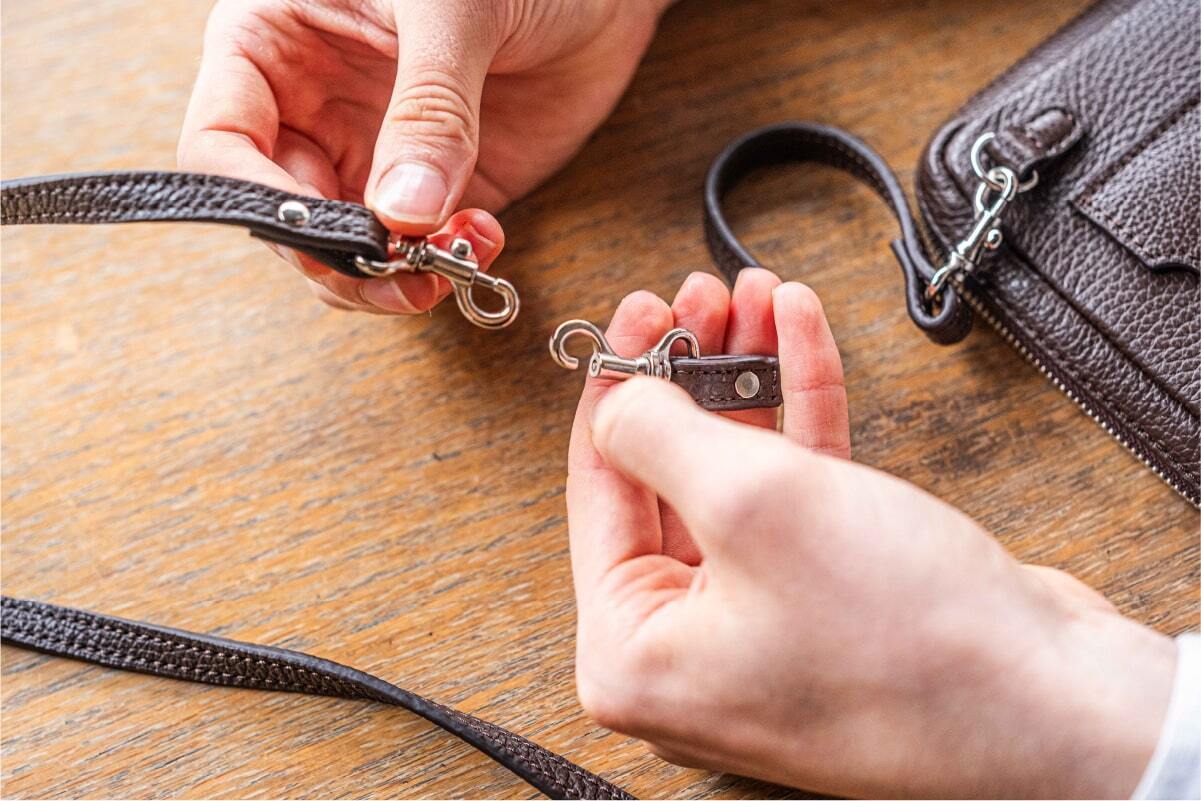 体格やファッションに合わせて、ストラップを組み合わせて便利に使えます。