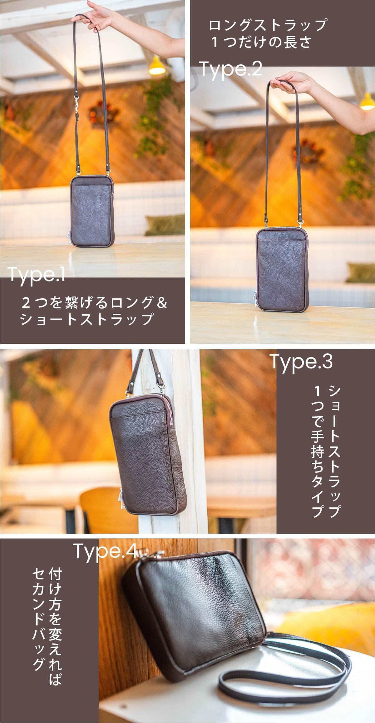 ロングタイプと、ショートタイプのストラップを組み合わせて使えば、4通りの使い方ができます。