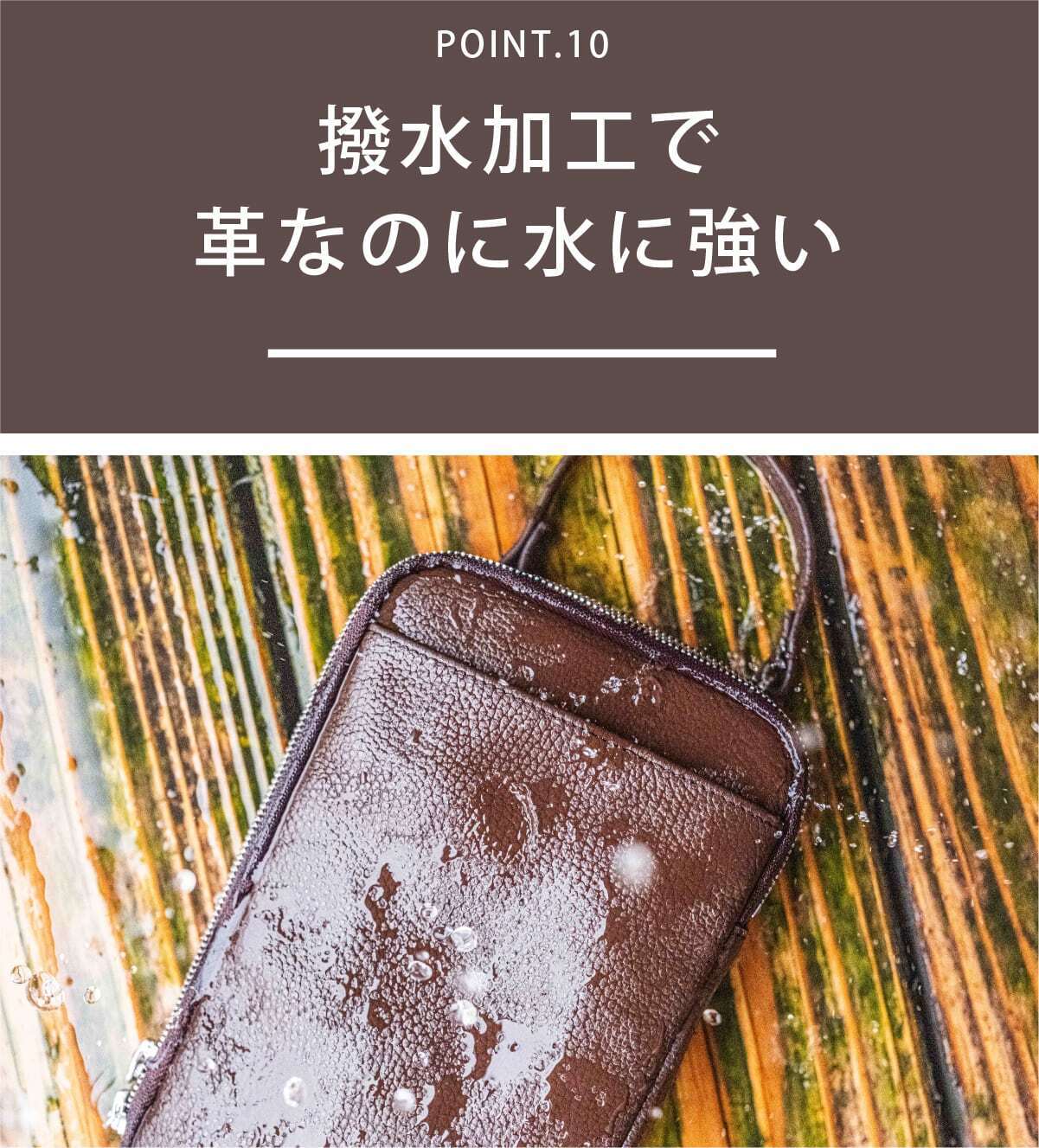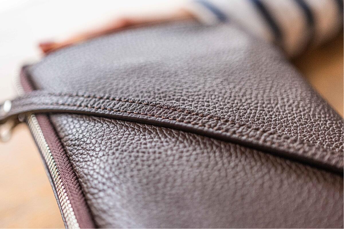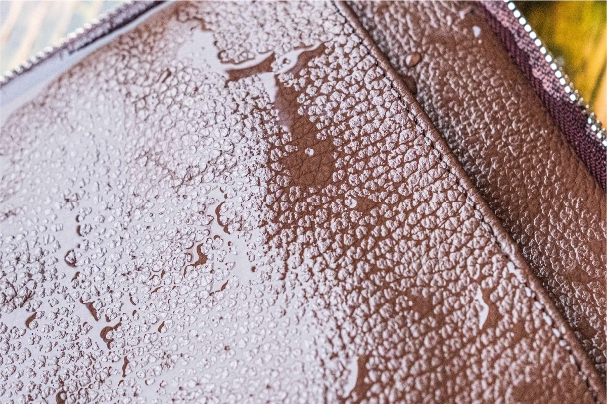 このイタリアンレザーは撥水性があり、突然の雨でも安心です。ちょっとした水濡れであれば、直後にサッと拭き取るだけで綺麗に使えます。