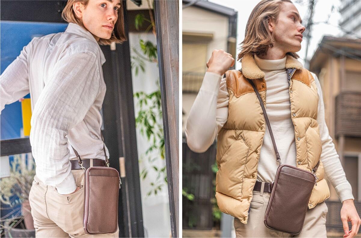 ファッション性も考慮してイタリアンレザーを贅沢に使っているので、便利なだけでなく、オシャレも決まります。