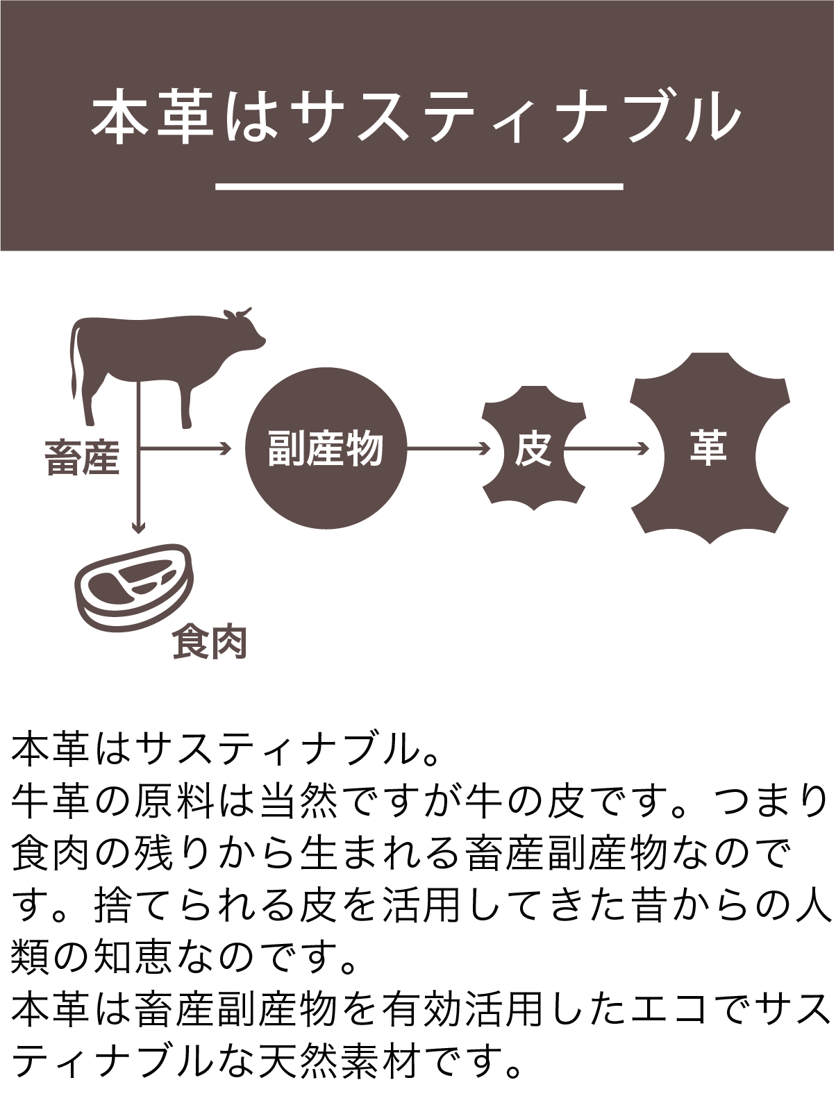 イタリアンレザーはマストロット社のものを贅沢に使用しています。細かいシボの風合いが美しく、キズやシワが目立ちにくいので、長く使うことができます。(マストロット社は1958年に設立されたイタリア最大級のタンナーです)