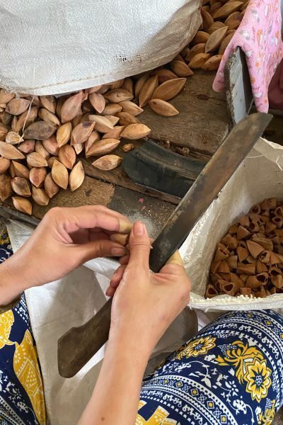 熟練の職人さんが一粒一粒ピリナッツを取り出します