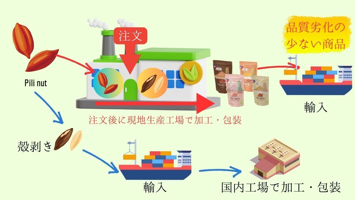 ピリナッツ商品の生産管理方式の違い
