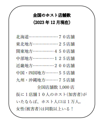 ちょうど5ヶ月の活動になりますが、250件の相談を超え、70件の面談相談を超えました。全国から来ます。条例化、法令化への取り組みも進めてきましたが、このホスト問題の追及はできておらず、国内の無関心さは変わりません。マインドコントロール下におき、多数の組織が関わり、一人の女性を心理的に身体的に拘束しています。
