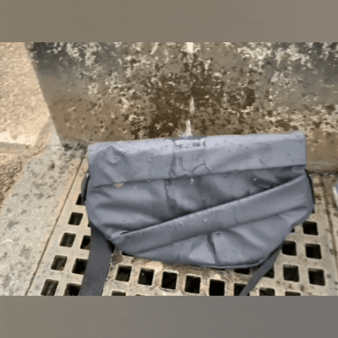 A. 耐水性に優れたナイロン生地で、雨粒をはじいて水の侵入を防ぎます。防水ではないため長時間濡れることは避けてください。