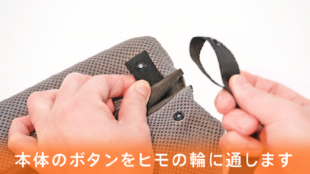 さらにヒモは着脱ができるため、付け替えることで持ち運び時の持ち手にしたり、椅子から落ちにくくしたりすることも。インドアでもアウトドアでも大活躍です!
