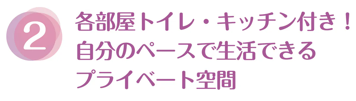 各部屋にトイレとキッチンが付いており(希望があれば洗濯機の設置も可能)、