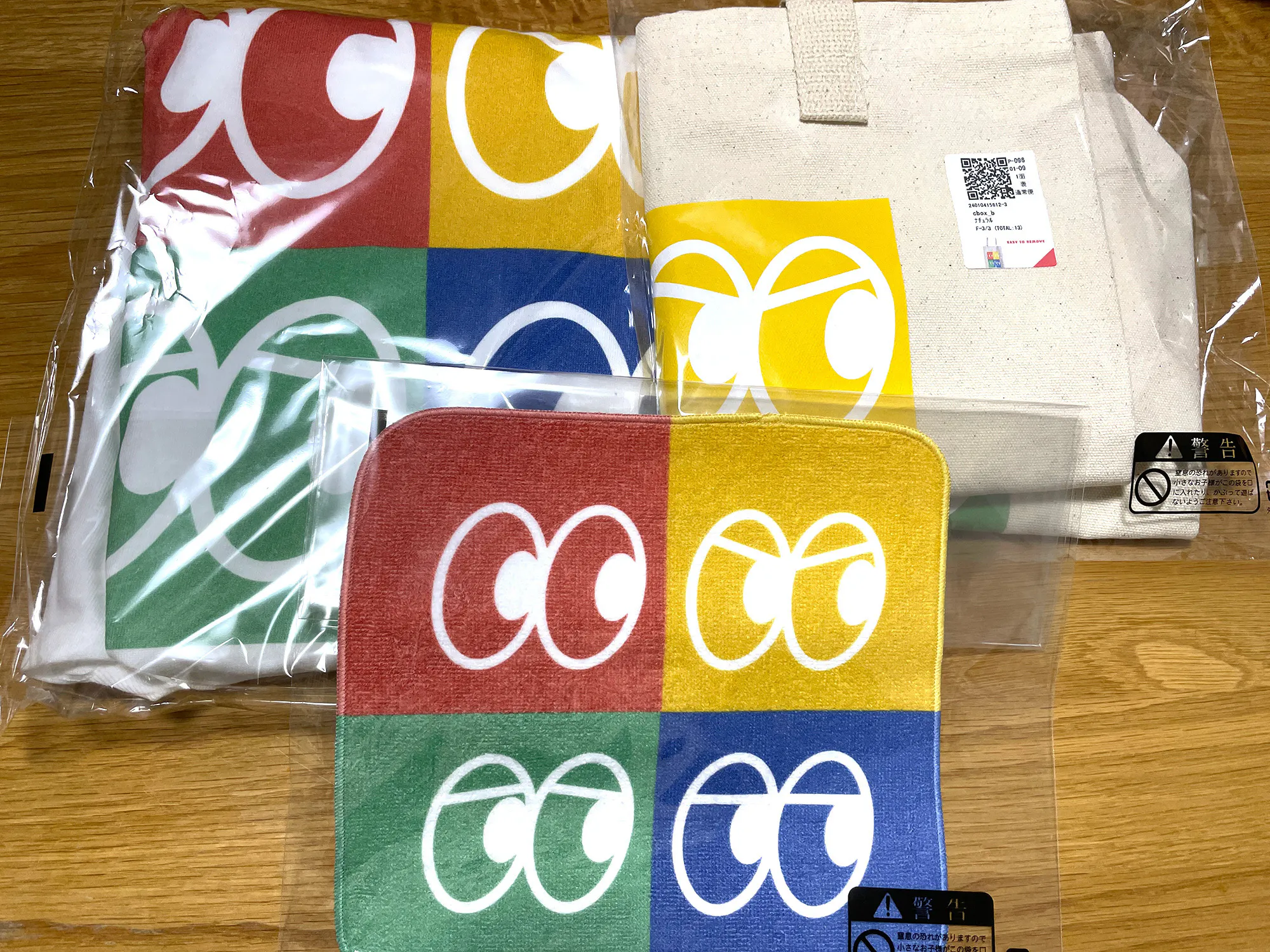 ハンドタオル、Tシャツ、トートバックと、いずれもカラフルなかわいらしい仕上がりになっています。